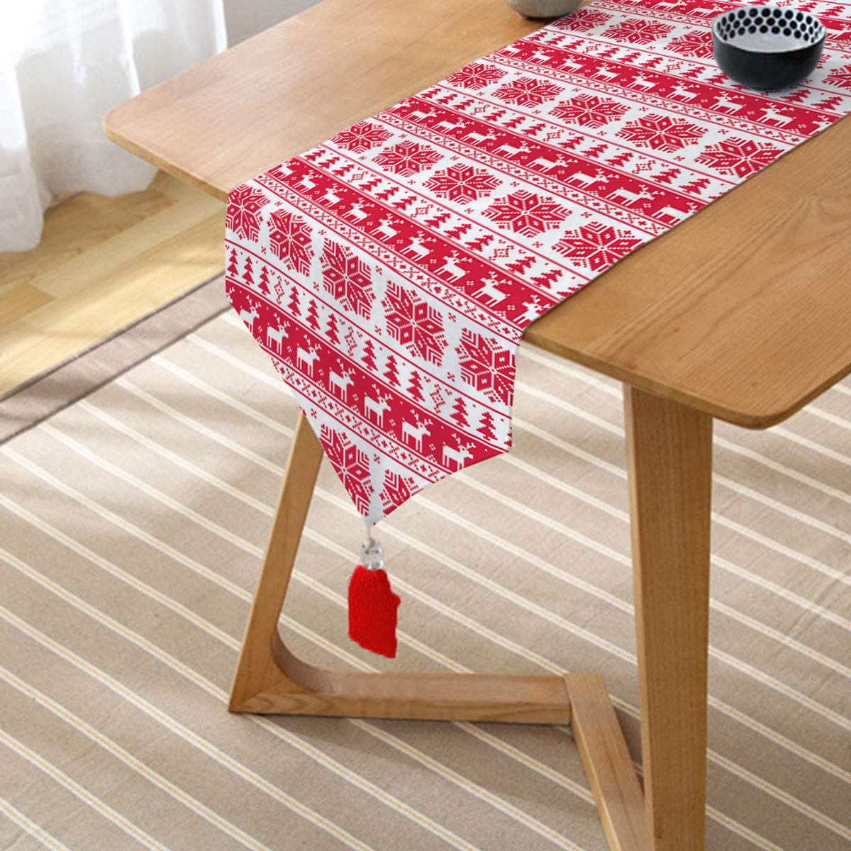 Kırmızı Beyaz Christmas Temalı Dijital Baskılı Modern Püsküllü Şönil Üçgen Runner Realhomes