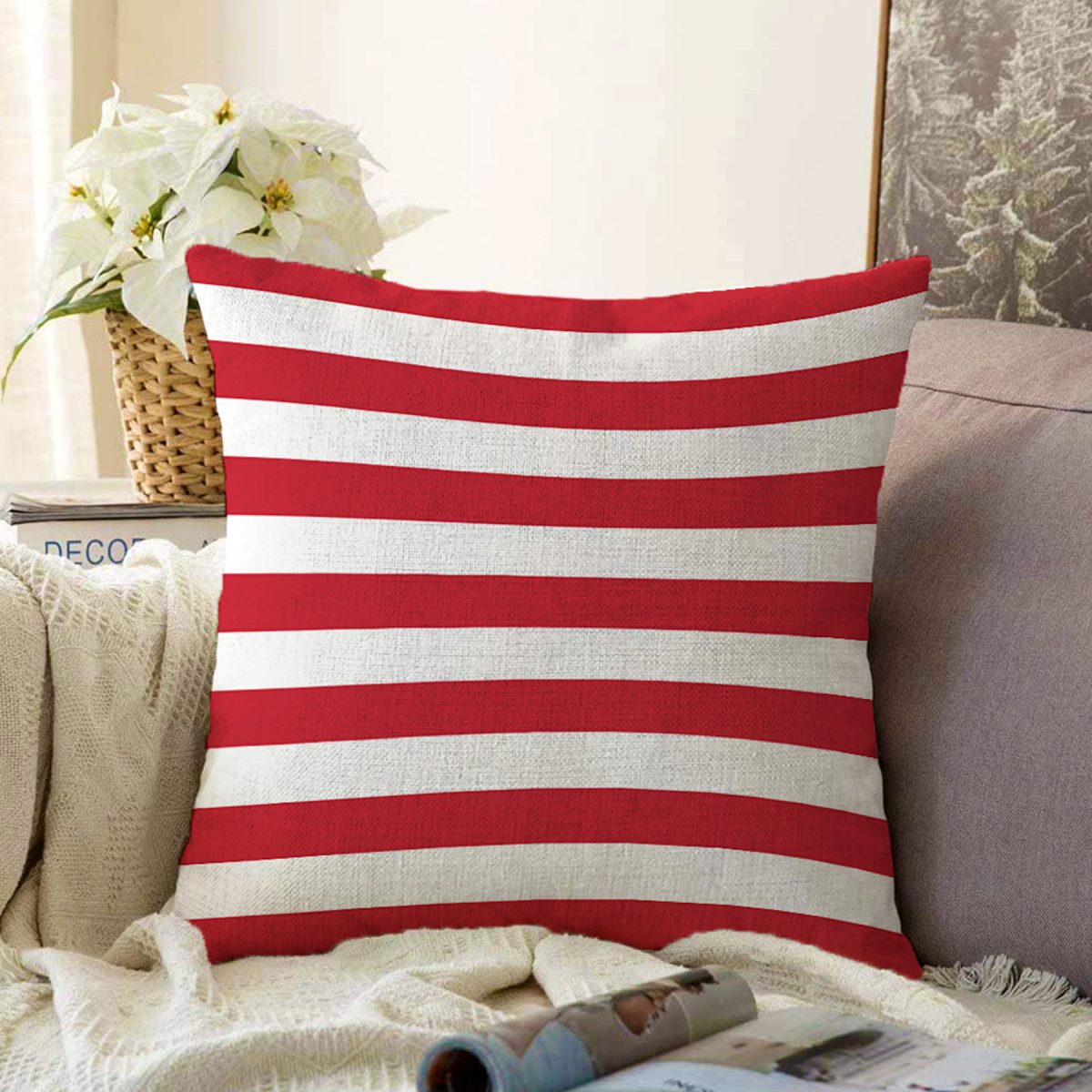 Kırmızı Beyaz Düz Çizgili Özel Tasarım Raşel Kadife Yastık Kırlent Kılıfı