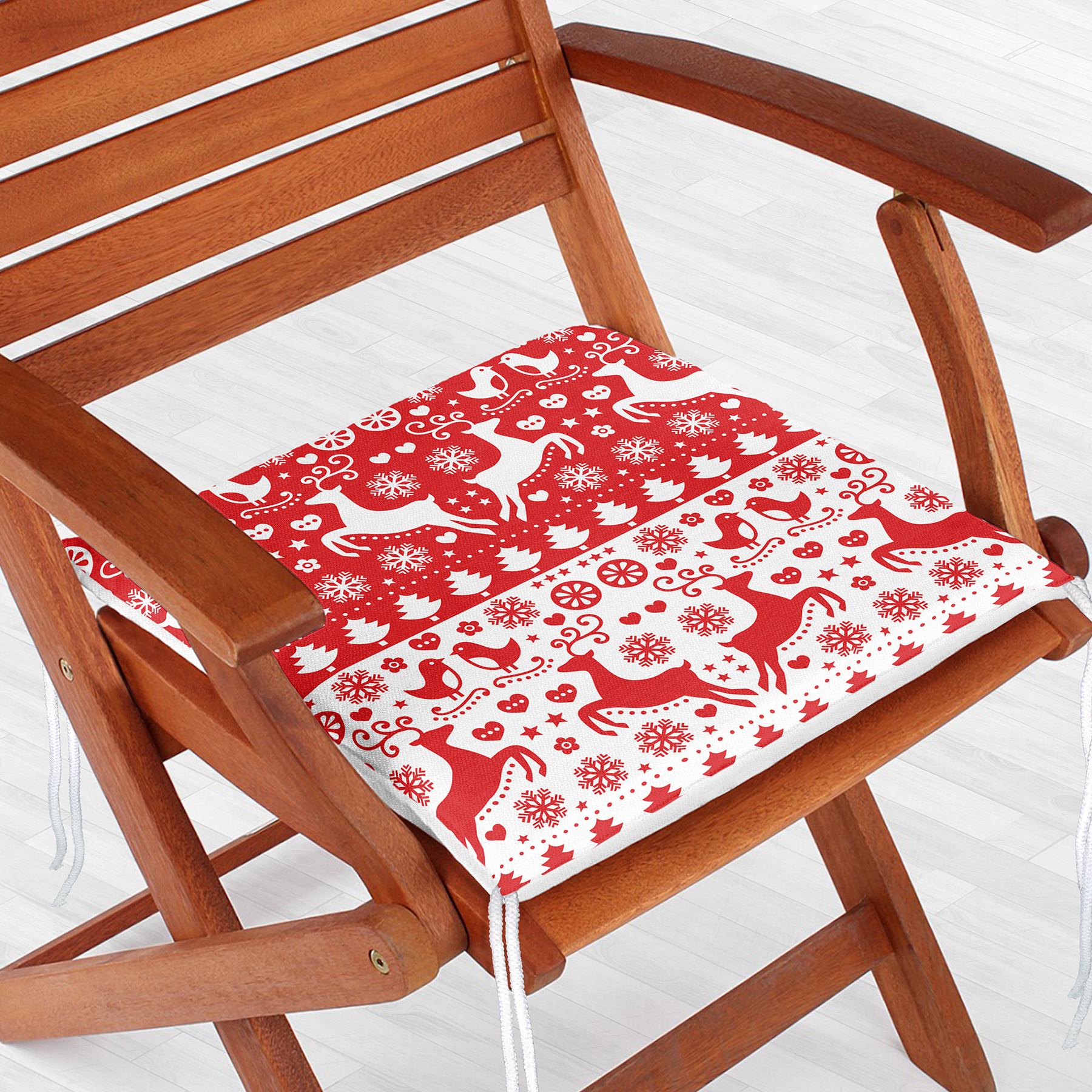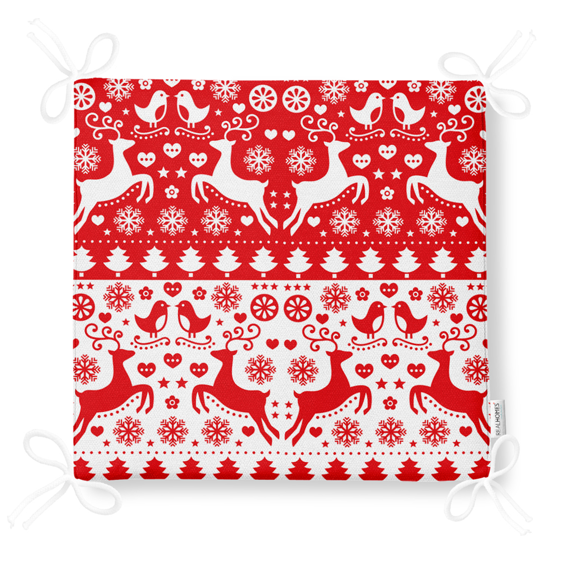 Kırmızı Beyaz Yılbaşı Geyikleri Dijital Baskılı Fermuarlı Sandalye Minderi Realhomes