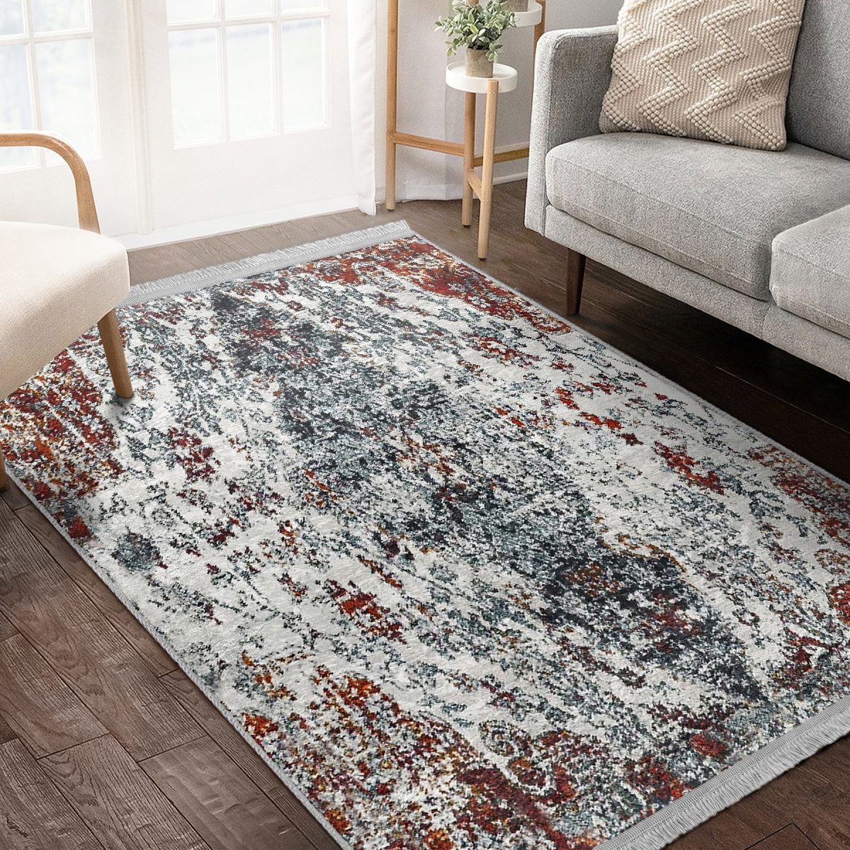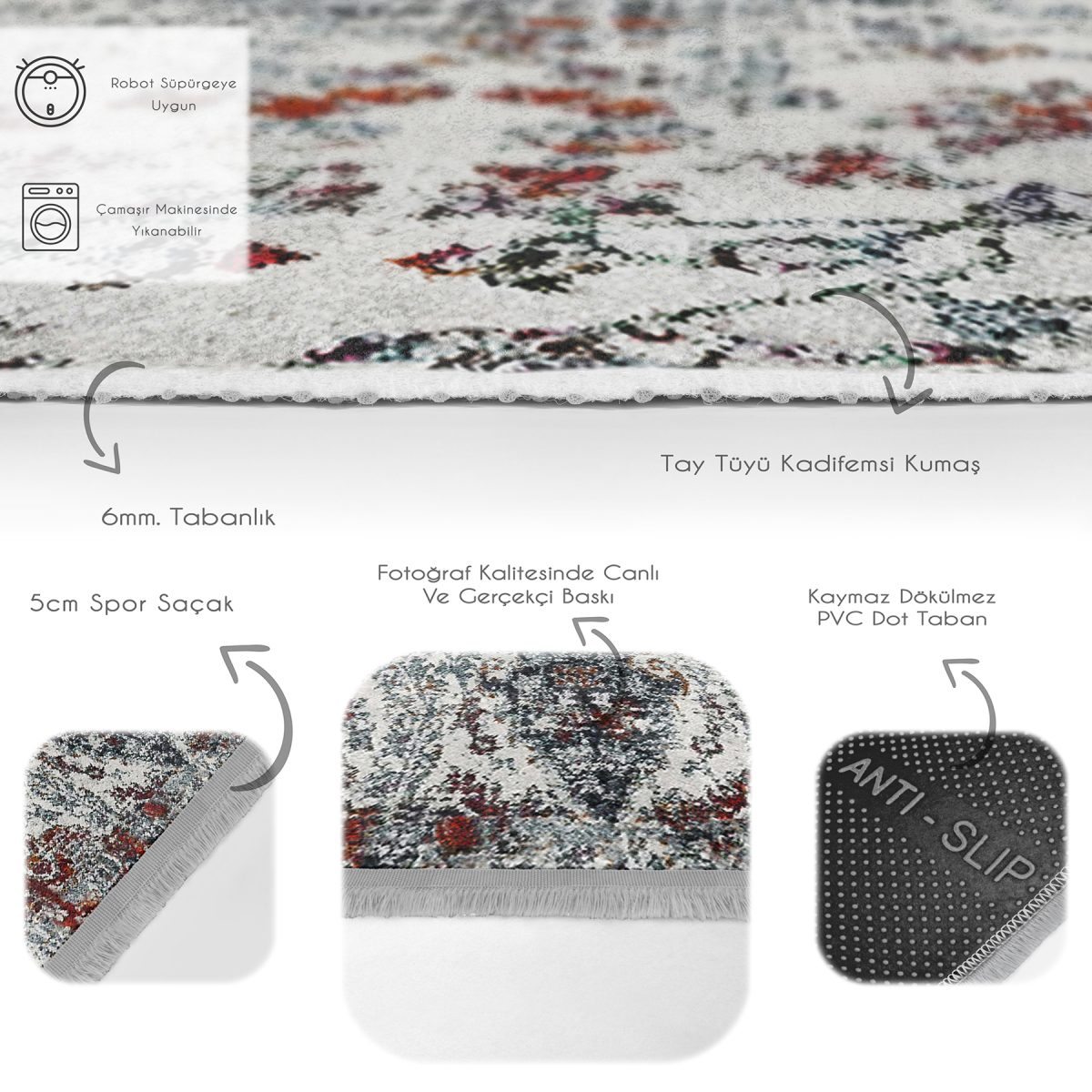 Kırmızı – Beyaz Zeminde Antik Motifli Yöresel Desenli Eskitme Motifli Avangarde Salon & Oturma Odası Yatak Odası Dijital Baskılı Makinede Yıkanabilir Kaymaz Taban Saçaklı Halı