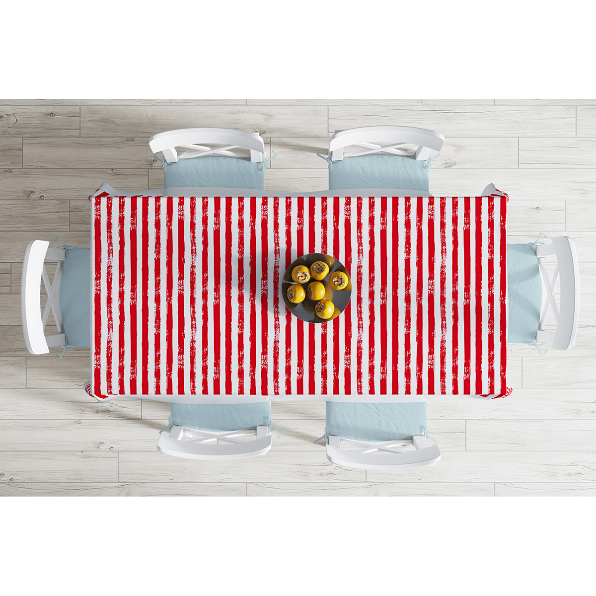 Kırmızı Çizgili Motifli Dekoratif Modern Masa Örtüsü