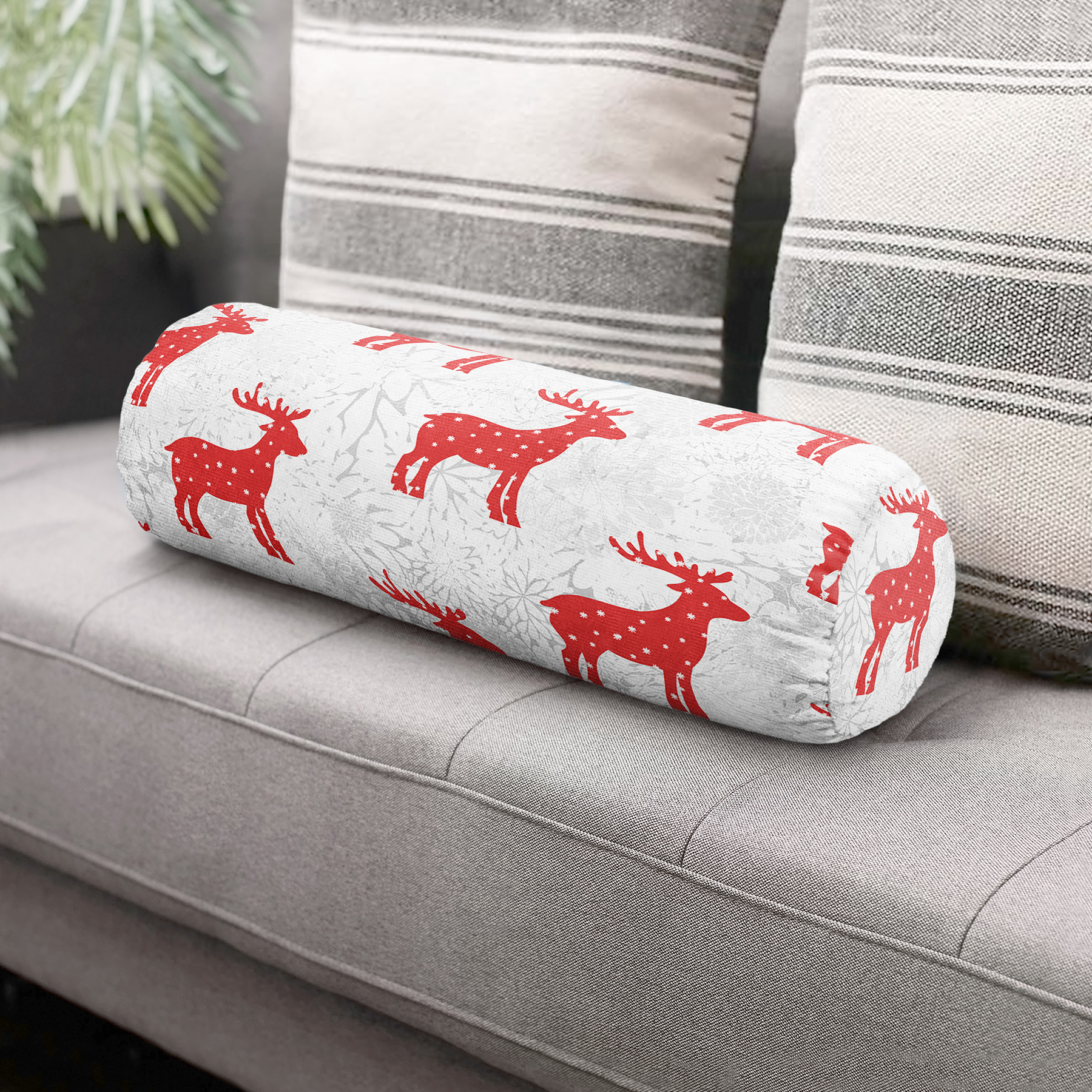 Kırmızı Geyik Desenli Özel Tasarımlı Dijital Baskılı Modern İç Dolgulu Süet Silindir Yastık Kırlent – Bel Yastığı