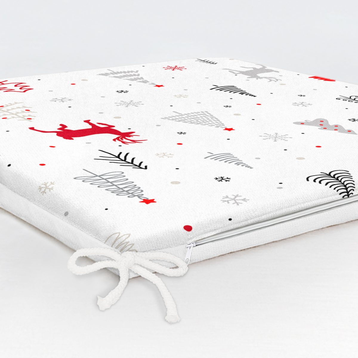 Kırmızı Geyikler ve Ağaçlar Yılbaşı Konseptli Dijital Baskılı Fermuarlı Sandalye Minderi
