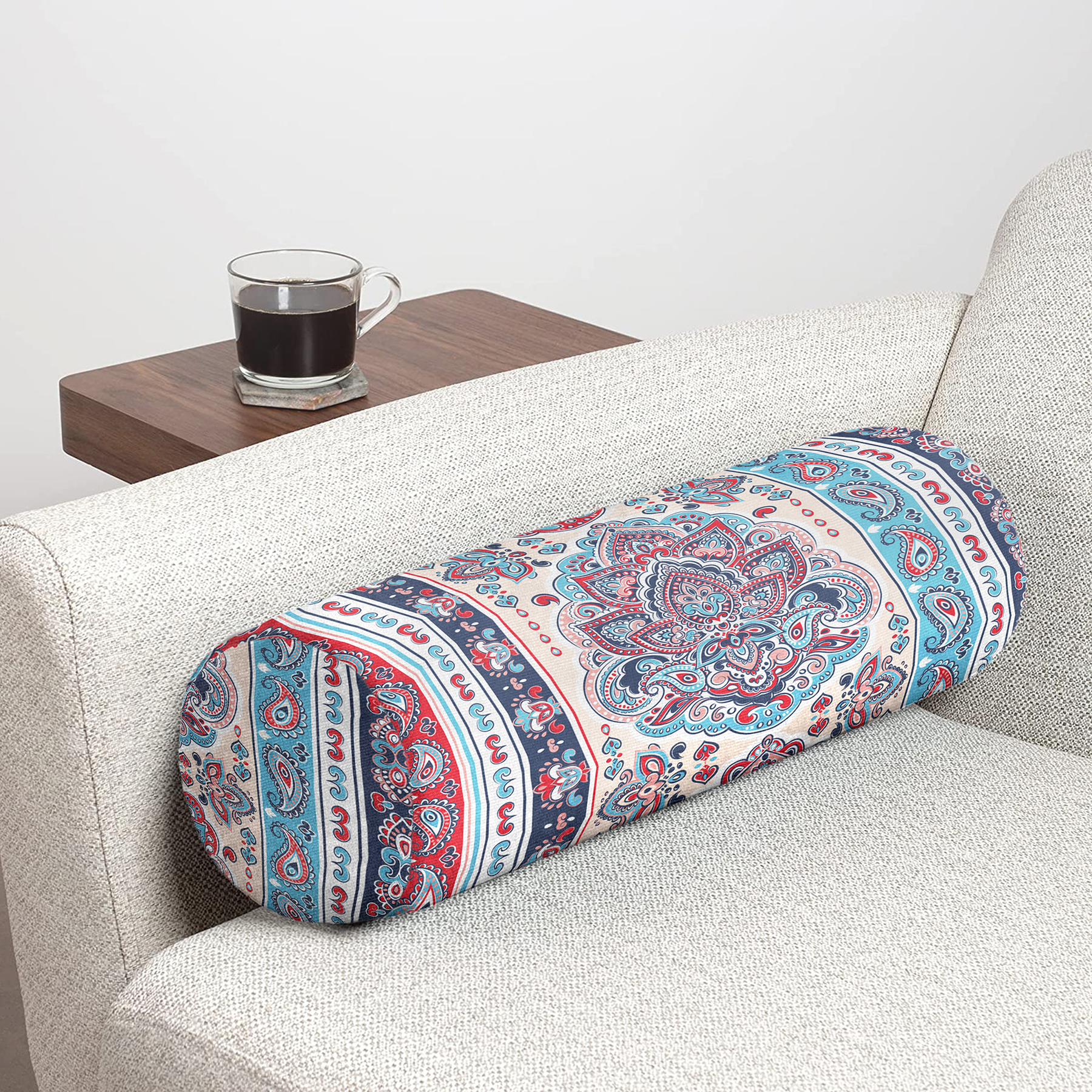 Kırmızı Mavi Çini Desenli Modern Dijital Baskılı İç Dolgulu Fermuarlı Çok Amaçlı Silindir Yastık Kırlent