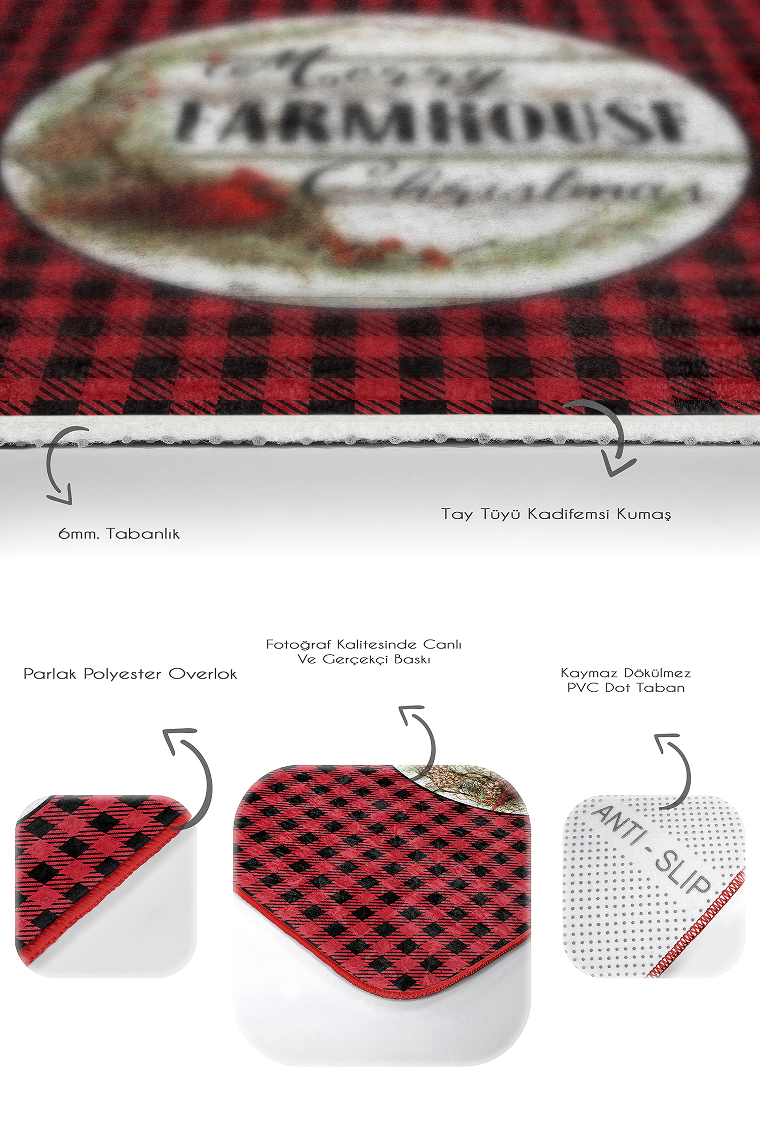 Kırmızı Siyah Ekose Christmas Temalı 2’li Mutfak Paspas Takımı & Banyo Halısı Seti