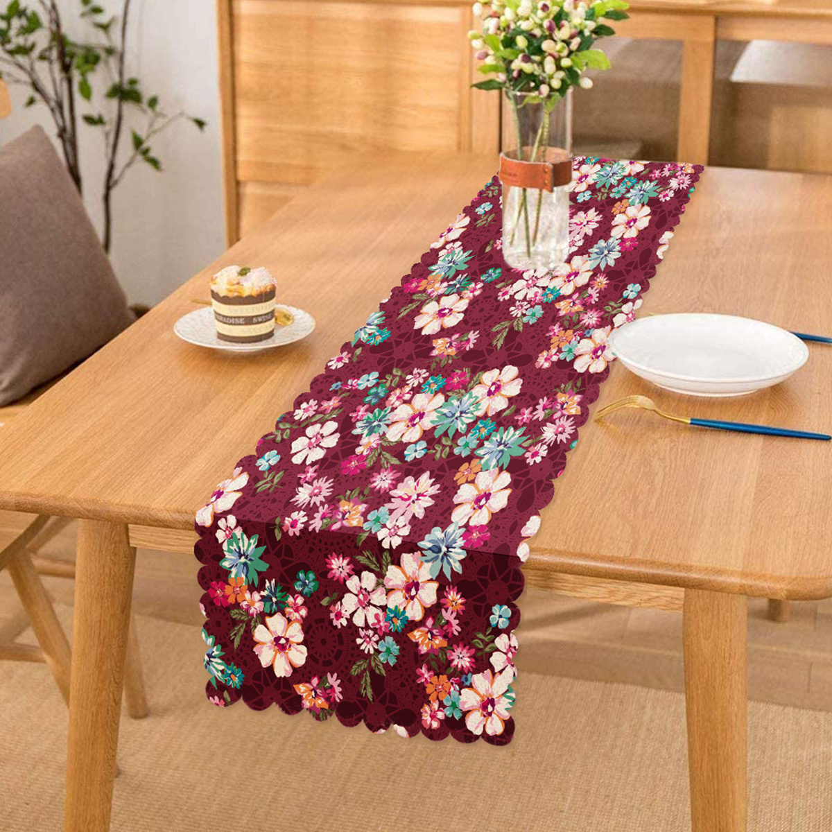 Kırmızı Zeminde Çiçek Motifli Dijital Baskılı Özel Tasarım Modern Runner