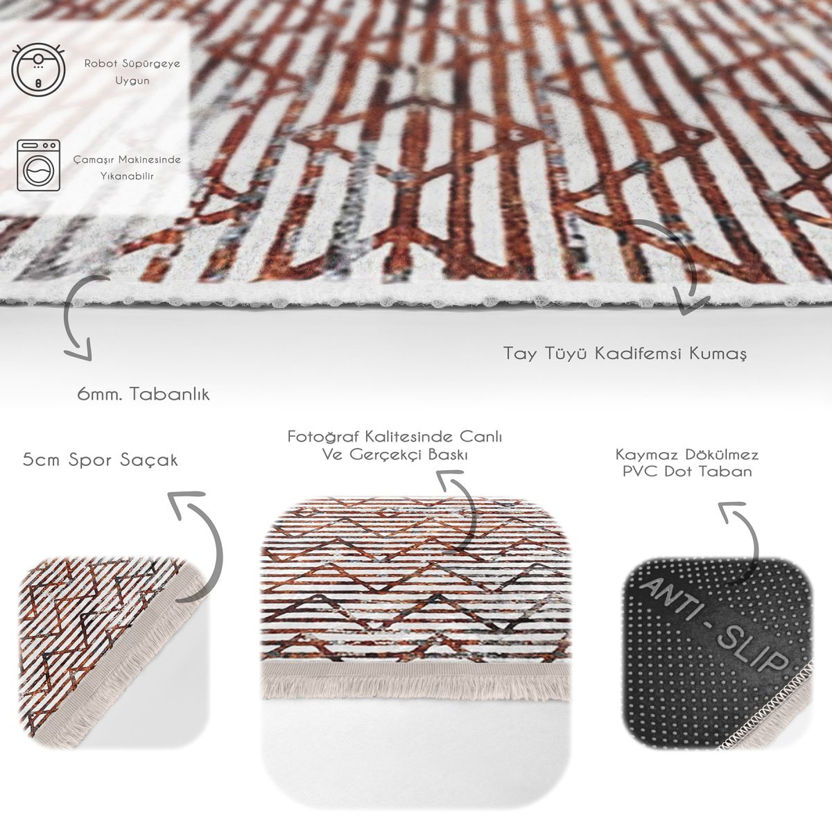 - Dökülmez kaymaz taban, Püsküllü kenar detayı.
