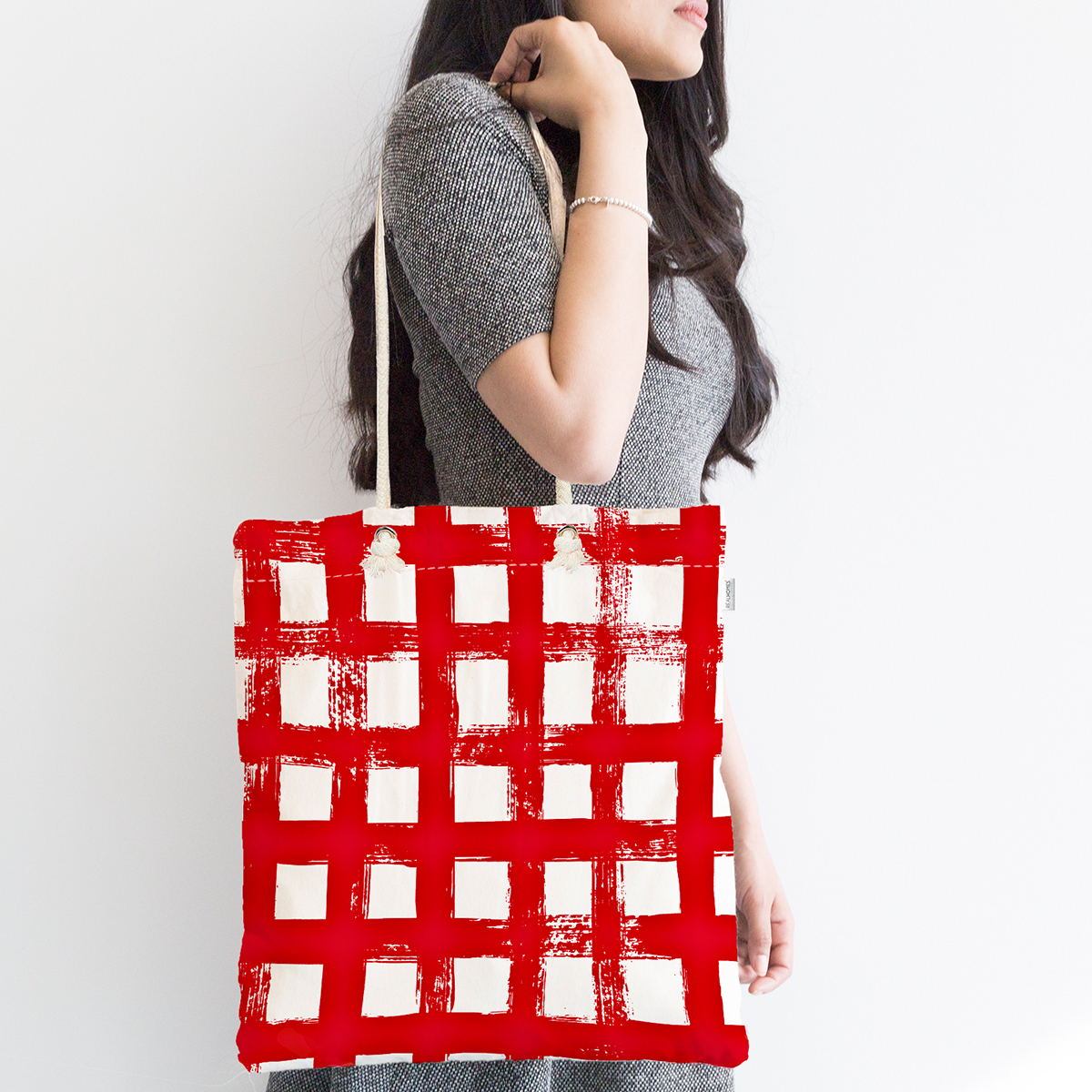 Kırmızı Zeminde Geometrik Kare Motifli Kumaş Plaj Çantası Realhomes
