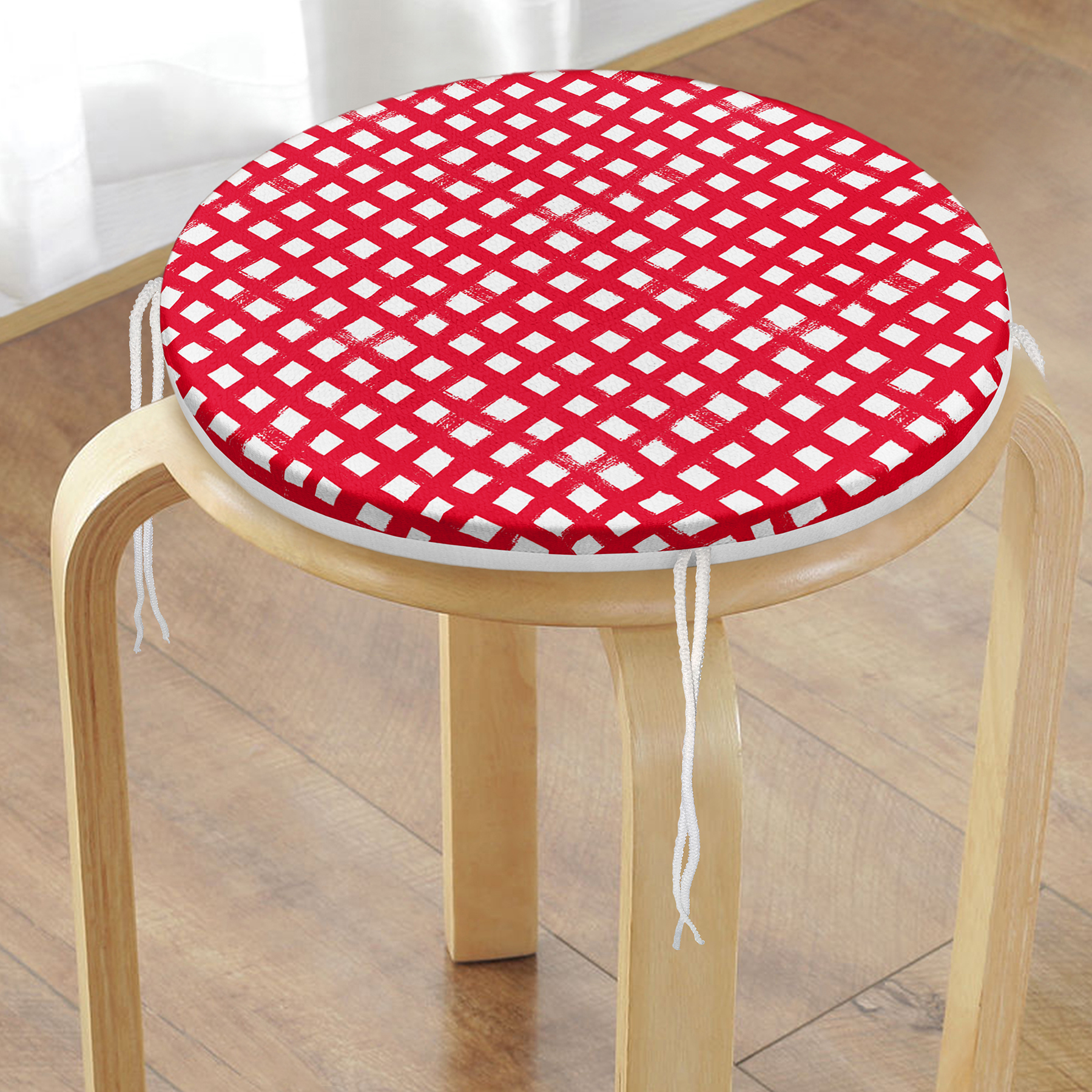 Kırmızı Zeminde Geometrik Kare Motifli Yuvarlak Fermuarlı Sandalye Minderi