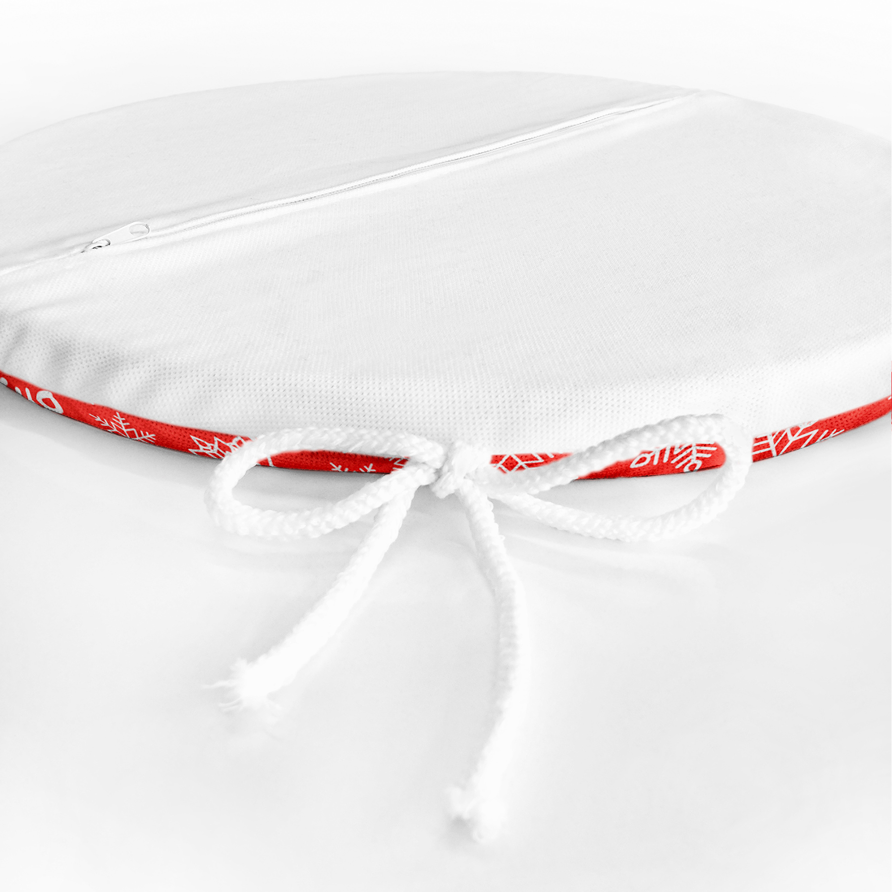 Kırmızı Zeminde Kar Tanesi Desenli Özel Tasarımlı Dijital Baskılı Modern Yuvarlak Fermuarlı Sandalye Minderi