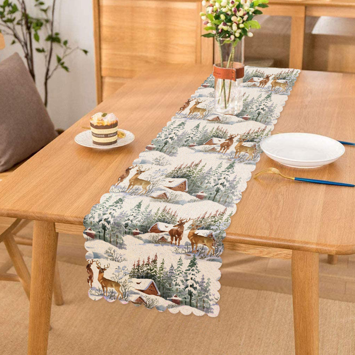 Kış Temalı Bağ Evi & Geyik Tasarımlı Dijital Baskılı Modern Runner