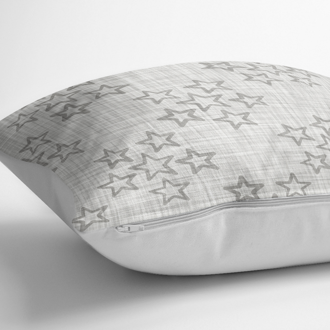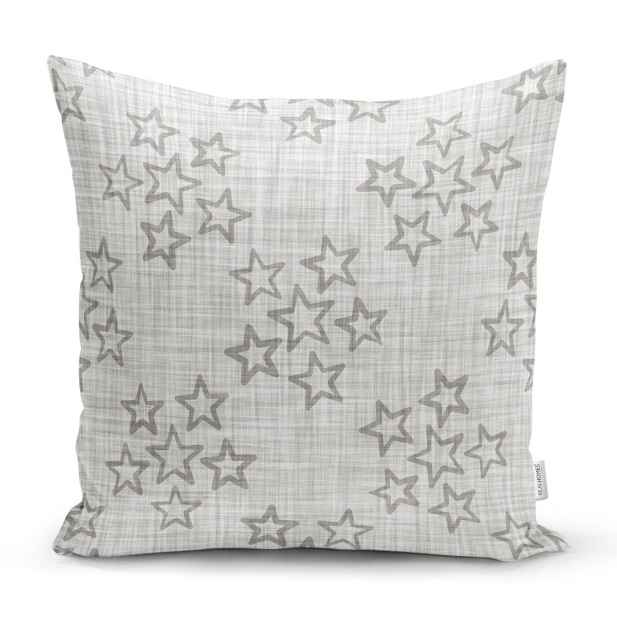 Kot Zeminli Yıldız Motifli Dekoratif Dijital Baskılı Kırlent Kılıfı