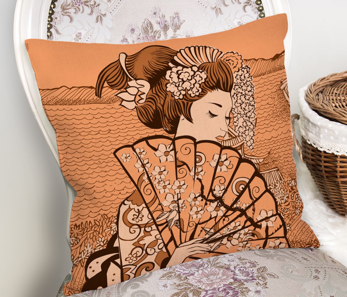 Gri Zeminde Yazı Yazan Japon Kadın Desenli Modern Yastık Kılıfı Orijinal fiyat: 159,99 ₺.Şu andaki fiyat: 149,99 ₺.