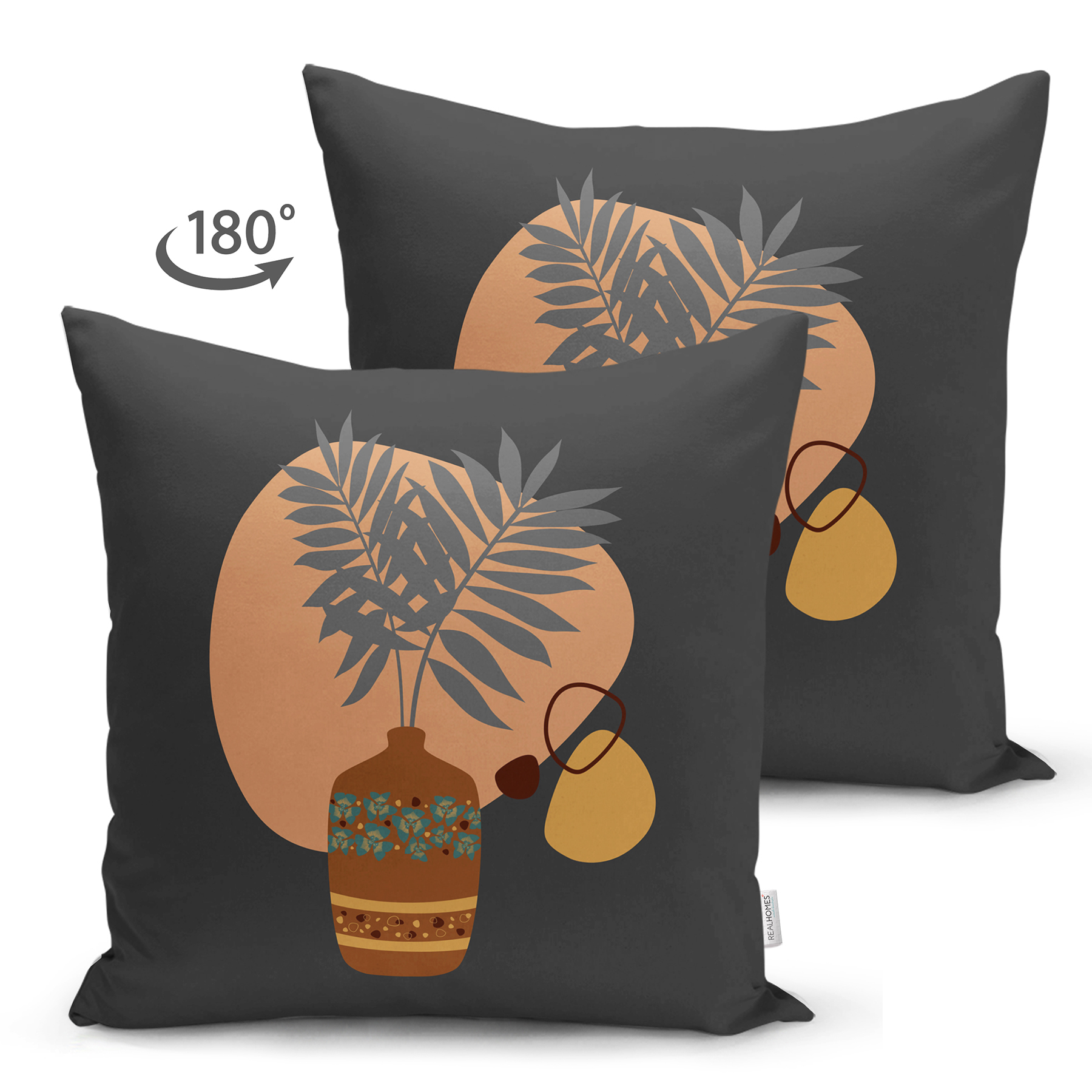 Koyu Gri Zeminli Vazo Temalı Dekoratif Süet Yastık Kırlent Kılıfı Realhomes