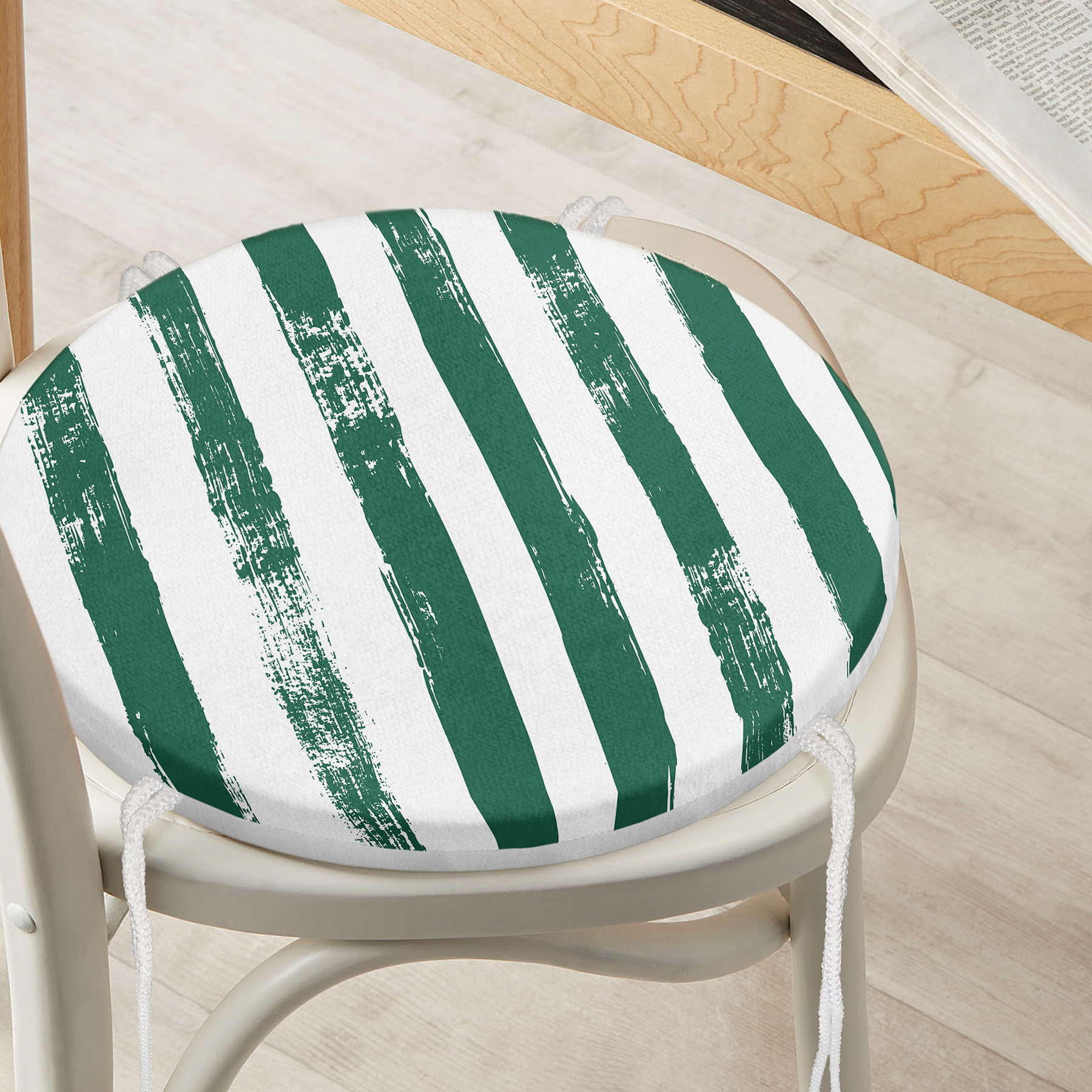 Koyu Yeşil Çizgili Motifli Modern Yuvarlak Fermuarlı Sandalye Minderi Realhomes
