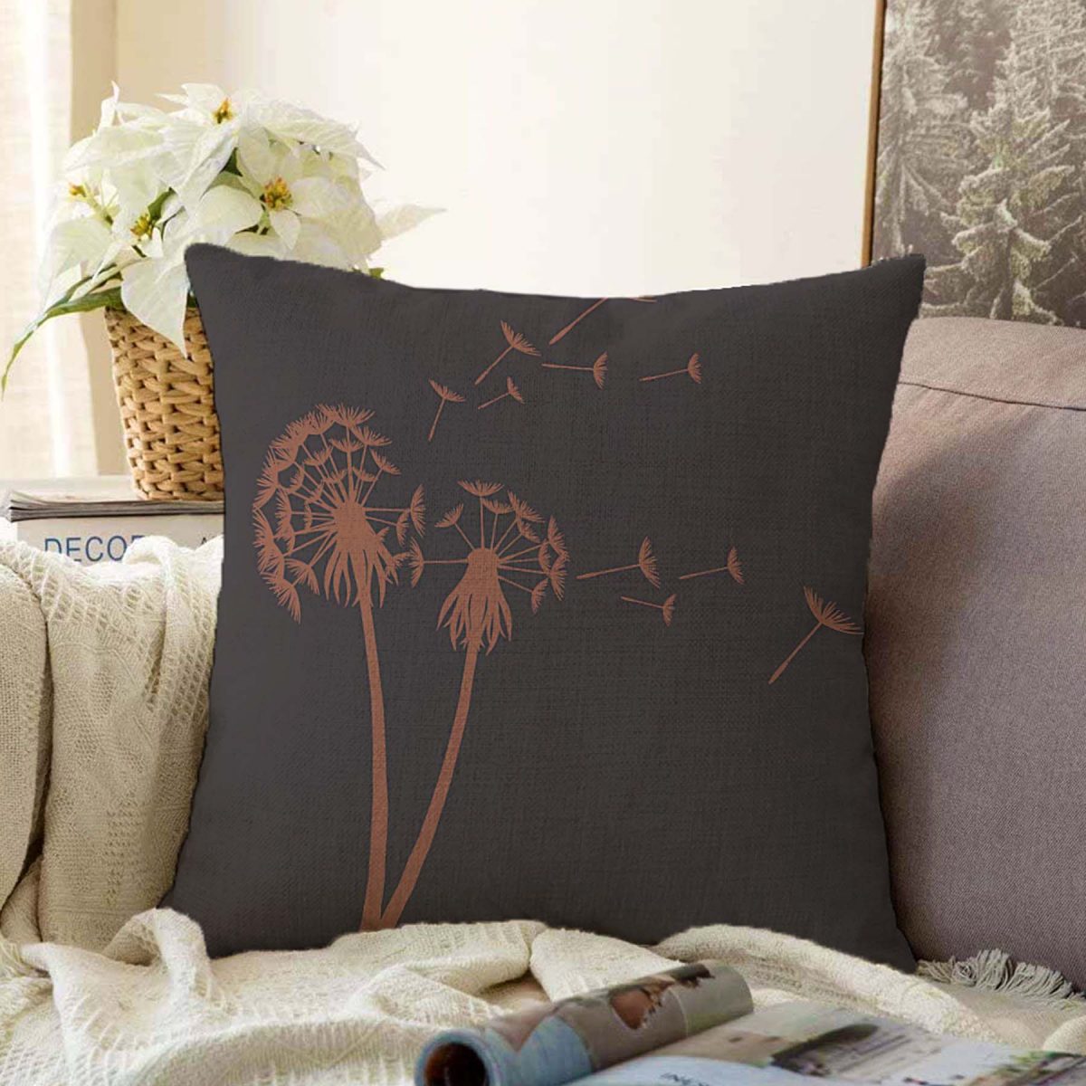 Koyu Zeminli Karahindiba Dijital Baskılı Raşel Kadife Yastık Kırlent Kılıfı