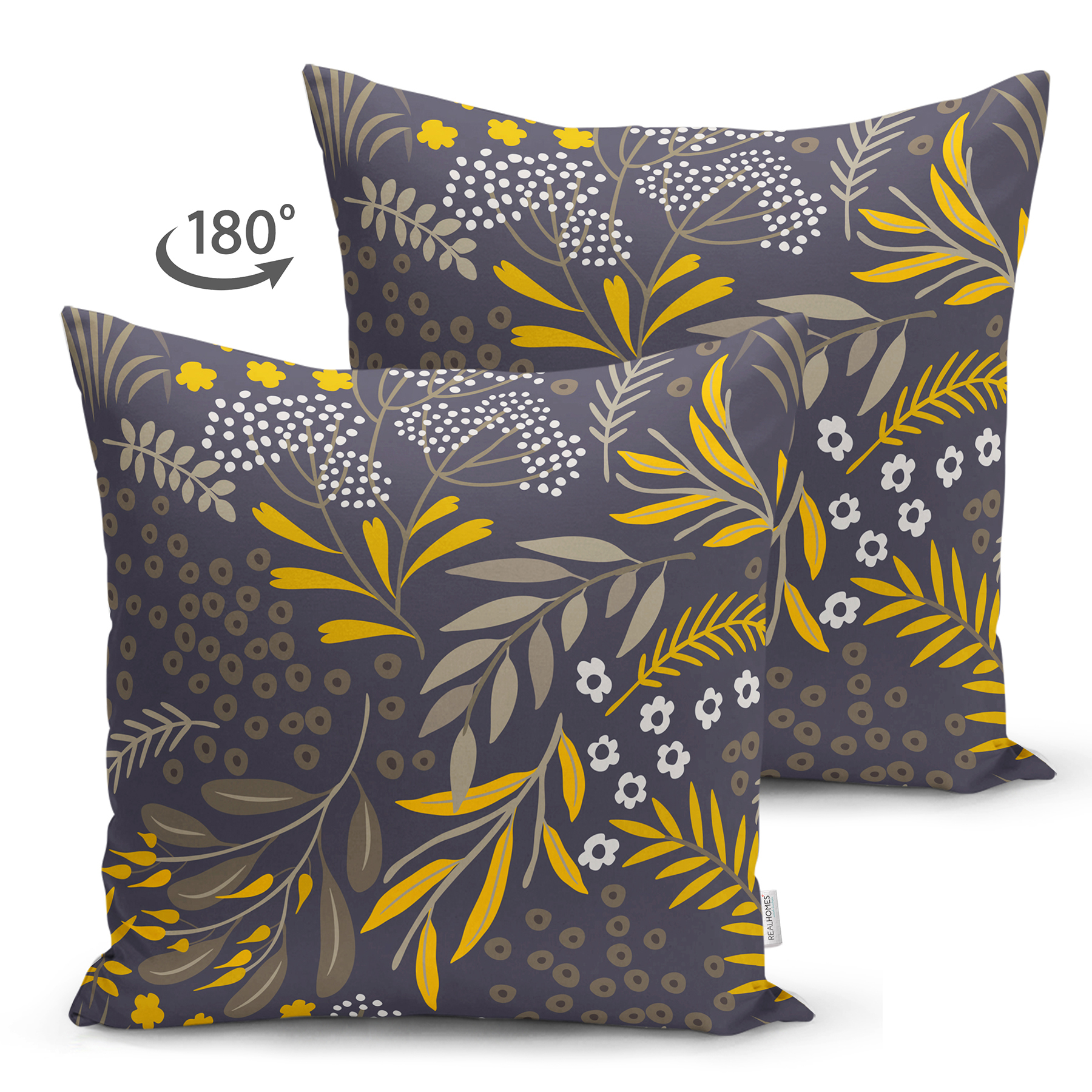 Koyu Zeminli Tropik Yaprak Motifli Dekoratif Süet Yastık Kırlent Kılıfı Realhomes