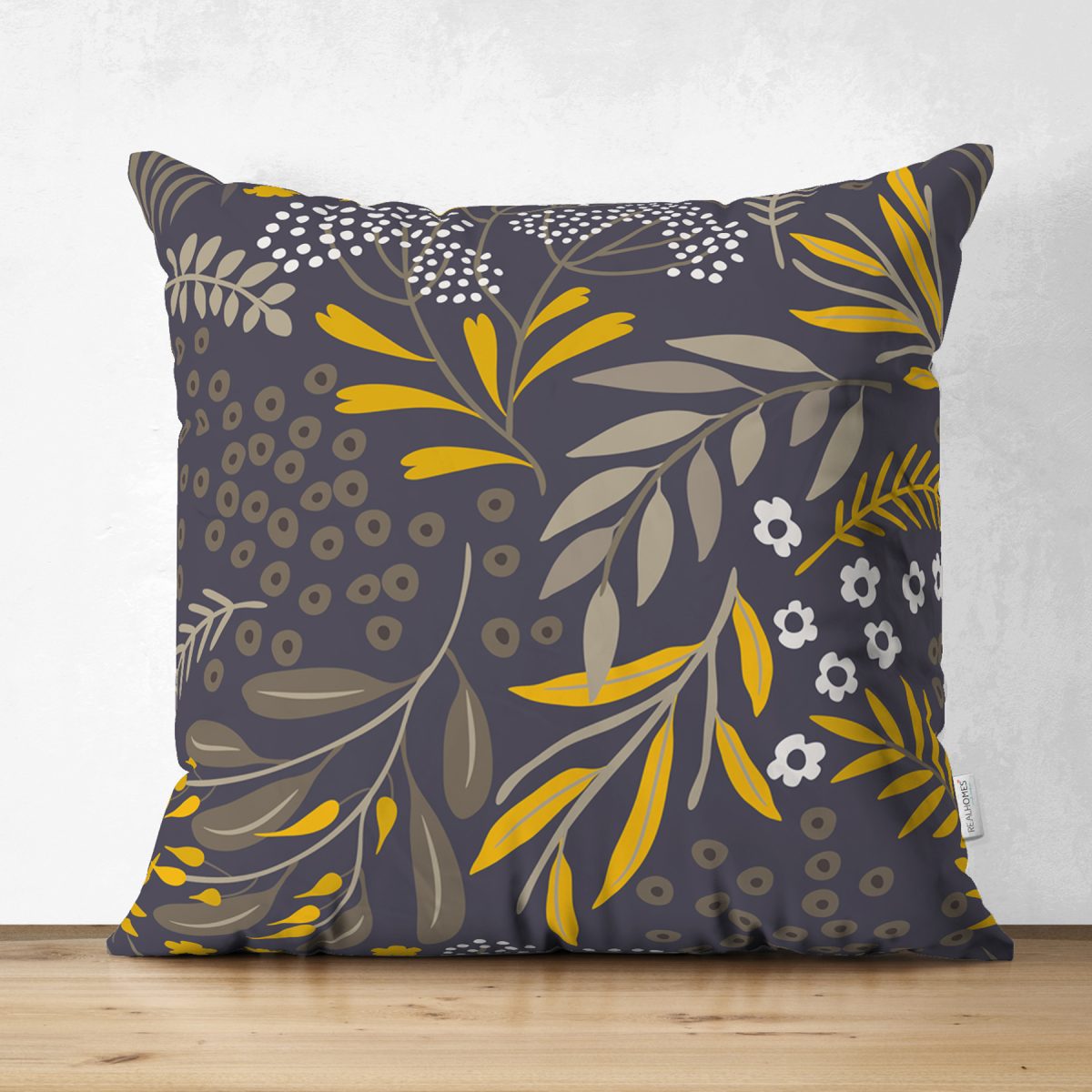Koyu Zeminli Tropik Yaprak Motifli Dekoratif Süet Yastık Kırlent Kılıfı