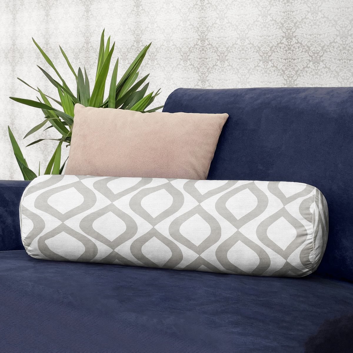 Krem Damlacıklı Tasarım Dijital Baskılı Modern İç Dolgulu – Fermuarlı Süet Berjer Silindir Yastık Kırlent