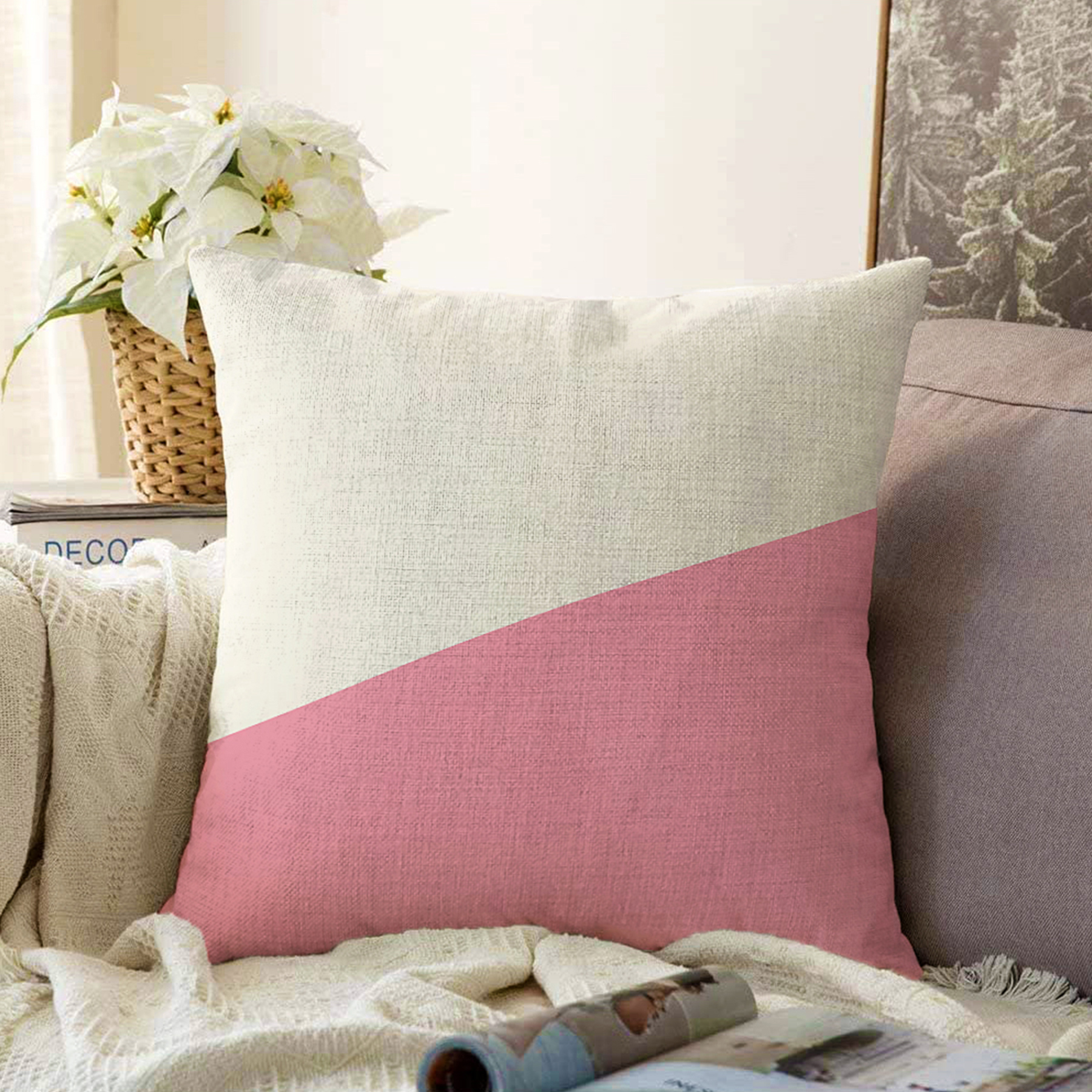 Krem & Pembe Düz Renkli Dijital Baskılı Dekoratif Raşel Kadife Yastık Kırlent Kılıfı