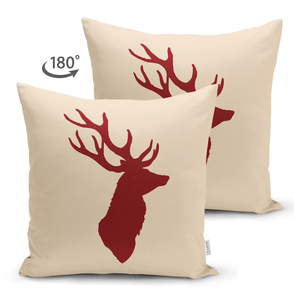 Krem Zemin Kahve Geyik Tasarımlı Modern Süet Yastık Kırlent Kılıfı Realhomes