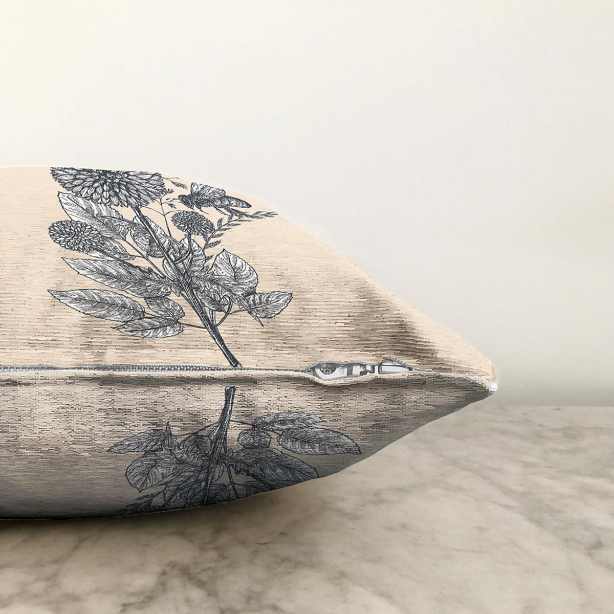 Krem Zemin Karakalem Çizimli Dijital Baskılı Dekoratif Raşel Kadife Yastık Kırlent Kılıfı