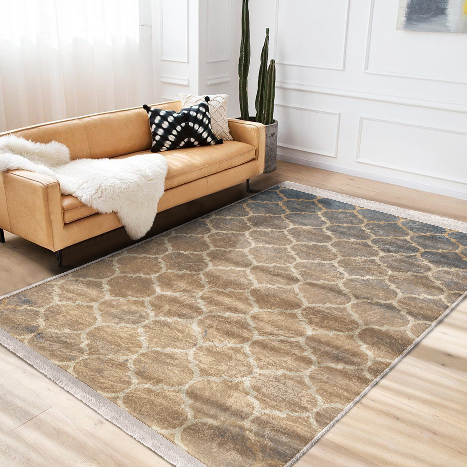 RealHomes Dijital Baskılı Kaymaz Tabanlı Deluxe Halılar, kumaş seçimi ve püsküllü dikiş detaylarıyla şık bir dekorasyon öğesi olarak kullanımınıza sunulmaktadır. Her bir desen RealHomes tasarımcıları tarafından özenle tasarlanmış ve satışa sunulmuştur. Fotoğraf kalitesinde canlı ve gerçekçi baskılarımız yıkamaya ve kullanıma bağlı olarak solma yapmaz, yıllar boyu ilk günkü özelliğini korur.