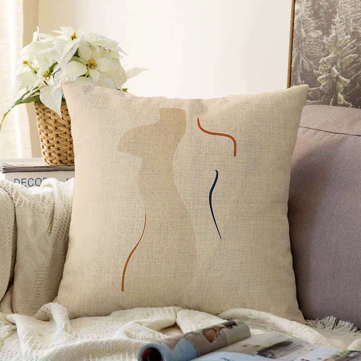 Krem Zeminli Kadın Silüet Çizimli Dijital Baskılı Modern Raşel Kadife Yastık Kırlent Kılıfı