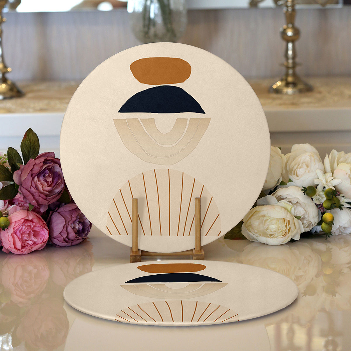 Krem Zeminli Minimalist Tasarımlı Dijital Baskılı Dekoratif 2'li Yuvarlak Servis Altlığı – Supla Realhomes