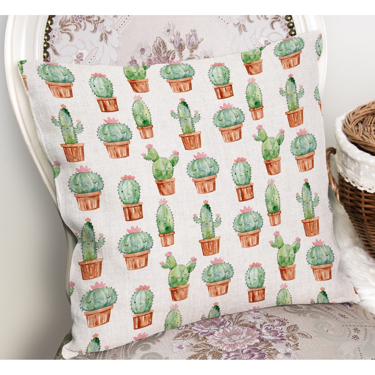 Küçük küçük Kaktüs Çizimleri Dijital Baskılı Yastık Kırlent Kılıfı Realhomes