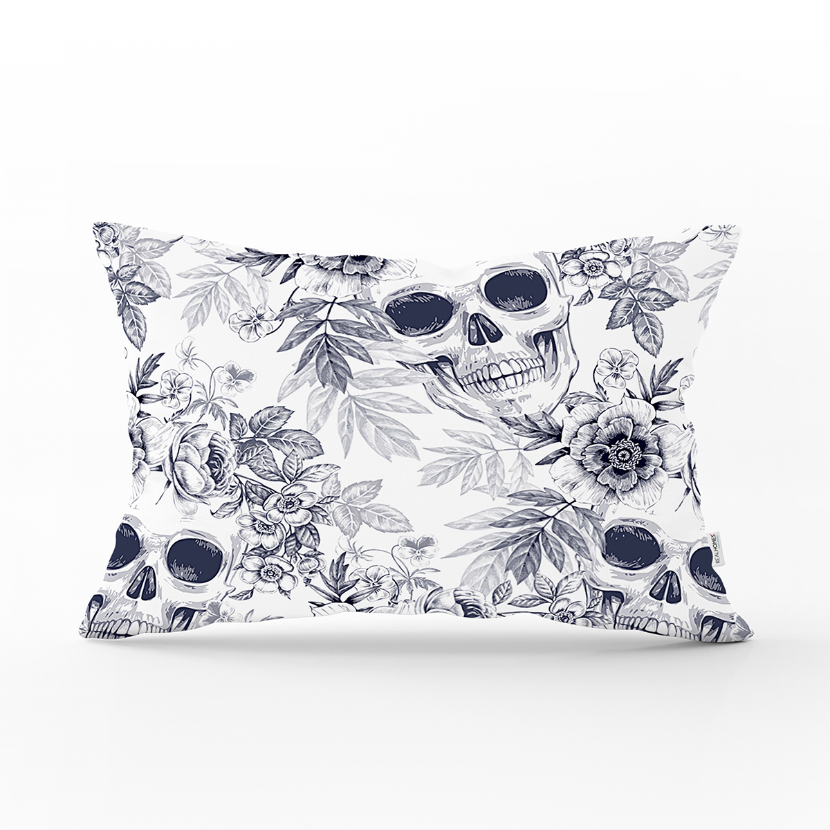 Kurukafa ve Çiçekler Motifli Dekoratif Dikdörtgen Yastık Kırlent Kılıfı