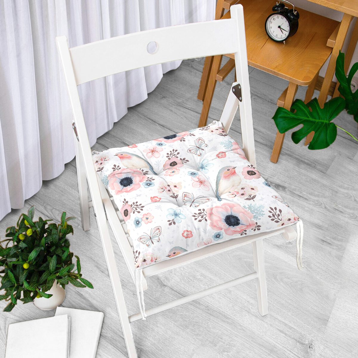 Kuş Ve Çiçek Desenli Dijital Baskılı Özel Tasarım Modern Pofuduk Sandalye Minderi Realhomes