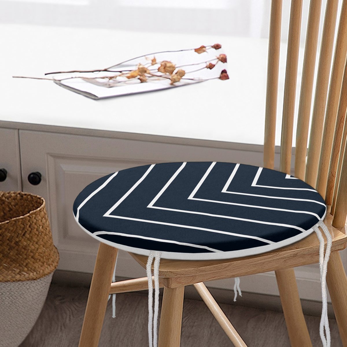 Lacivert Beyaz Çizgili Tasarım Yuvarlak Fermuarlı Sandalye Minderi Realhomes