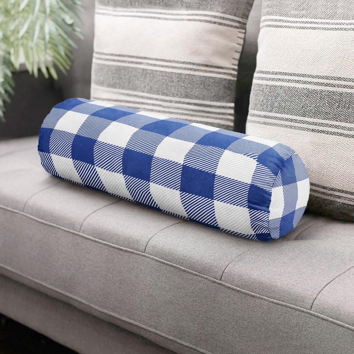 Lacivert Ekose Tasarımlı Dijital Baskılı Modern İç Dolgulu Fermuarlı Çok Amaçlı Silindir Yastık Kırlent