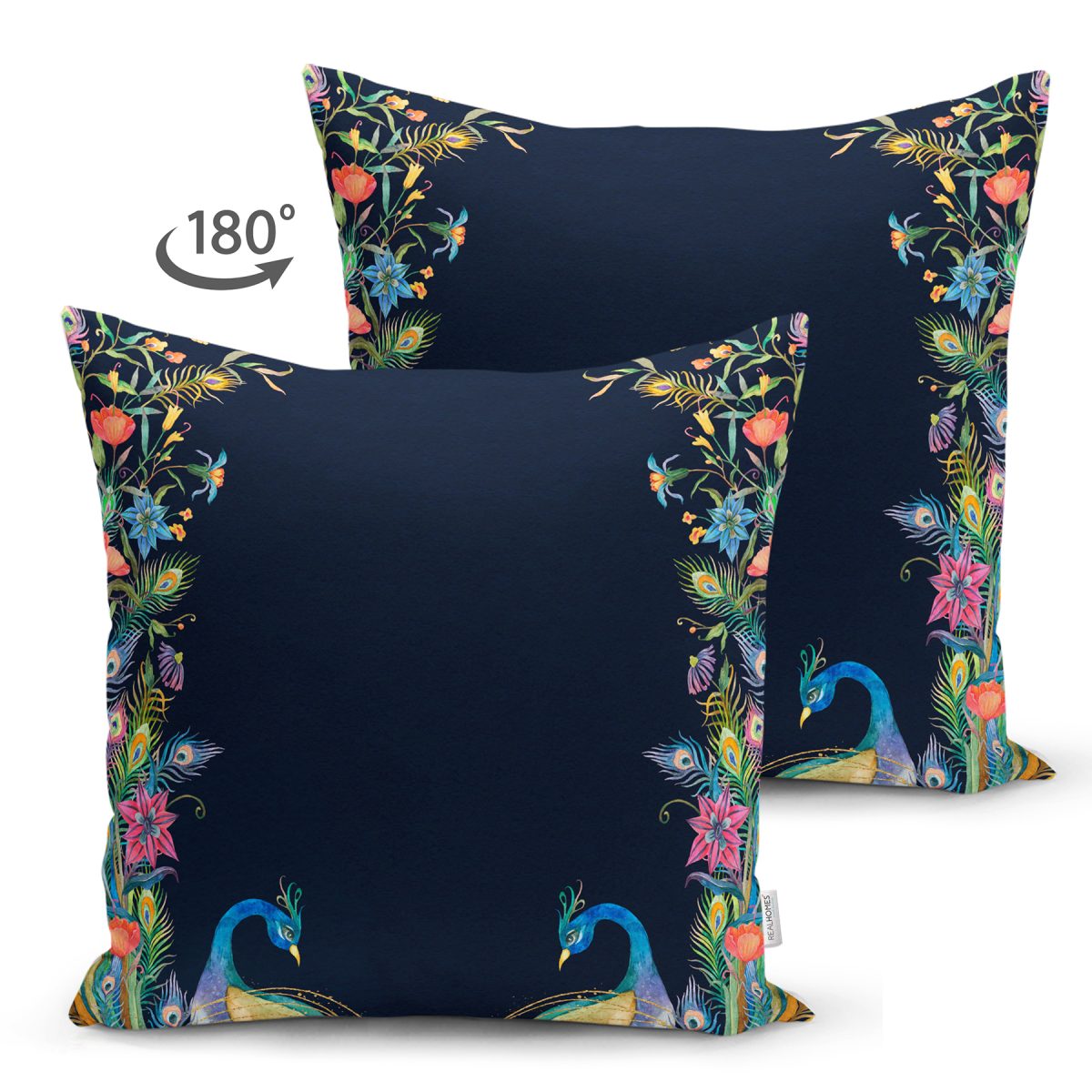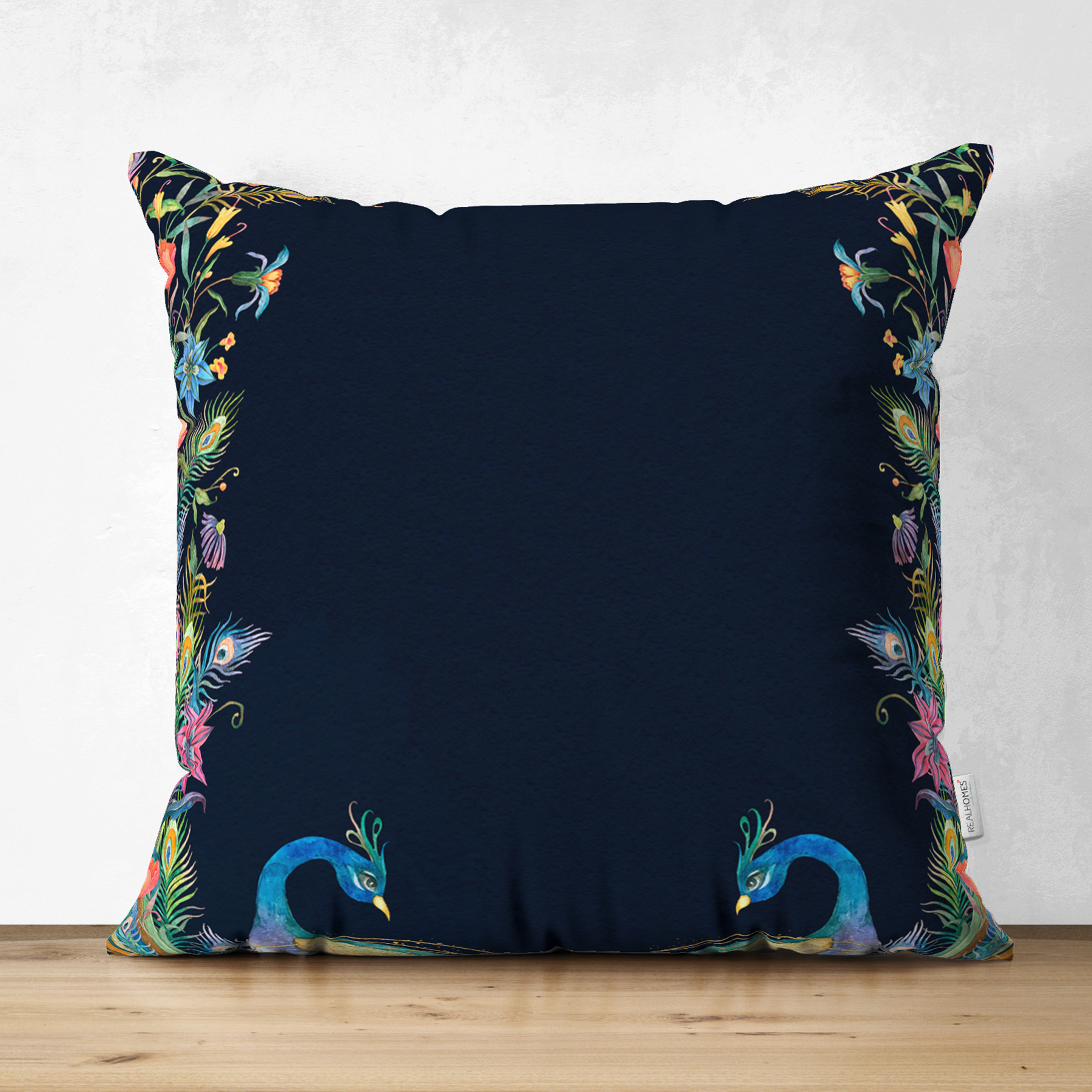 Lacivert Zemin Tavuskuşu Özel Tasarım Süet Yastık Kırlent Kılıfı Realhomes