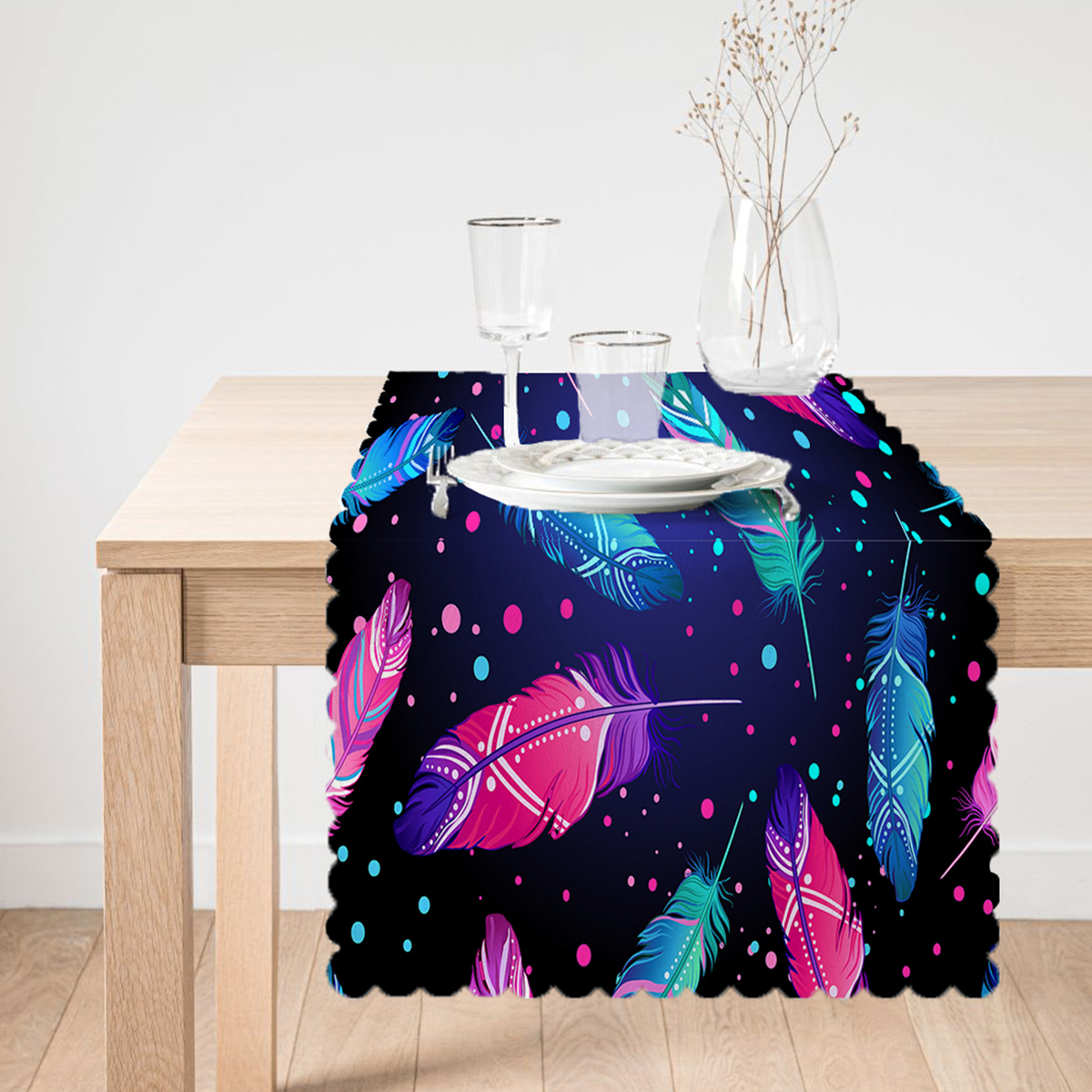 Lacivert Zeminde Renkli Tüyler Desenli Runner