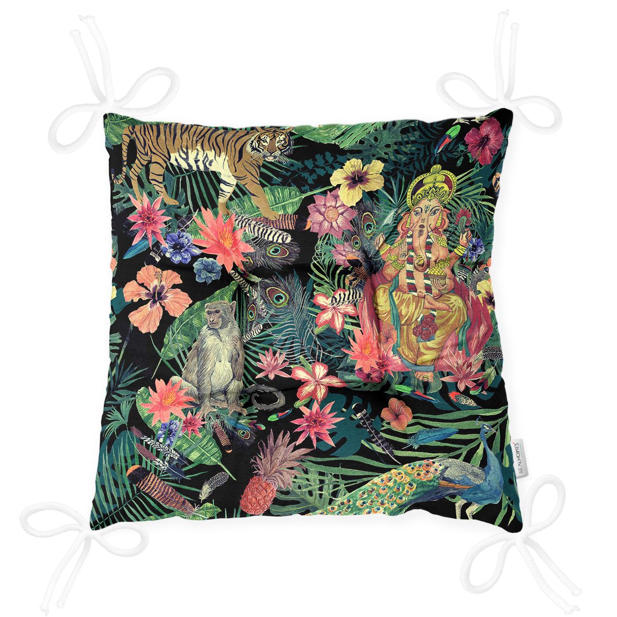 Lacivert Zeminli Amazon Ormanları Temalı Modern Pofuduk Sandalye Minderi Realhomes