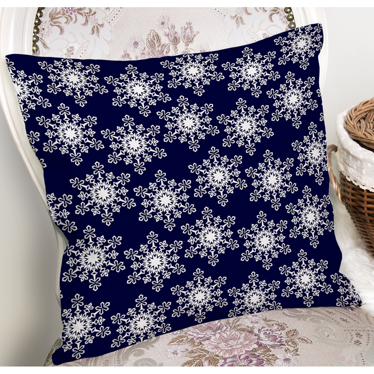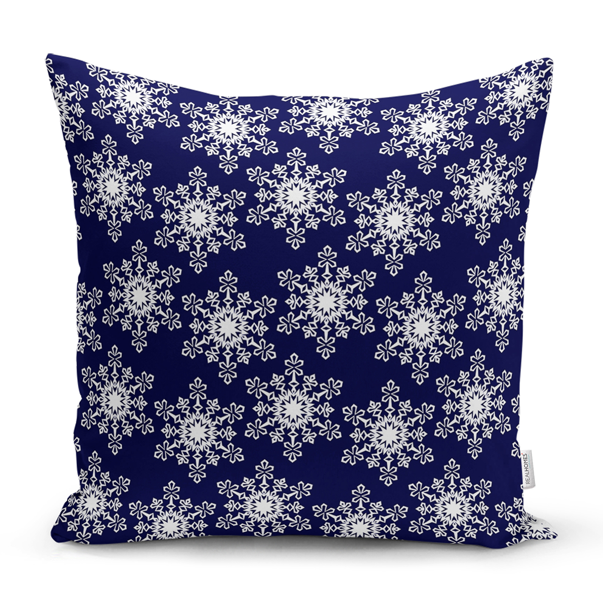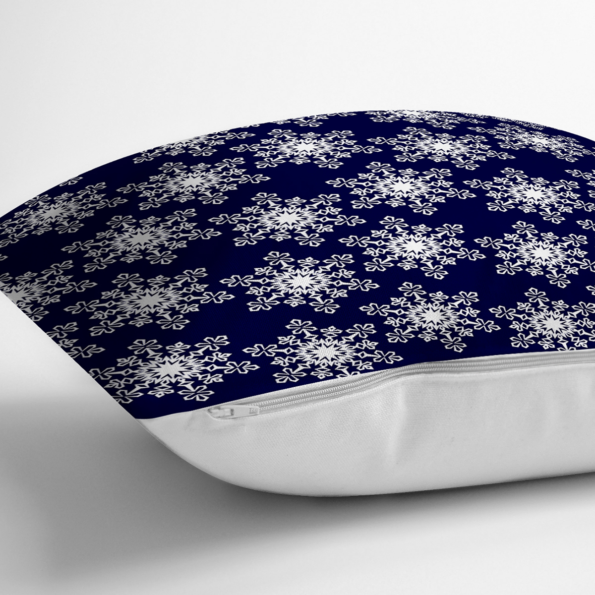 Lacivert Zeminli Beyaz Kartanesi Desenli Dijital Baskılı Modern Yastık Kılıfı Realhomes