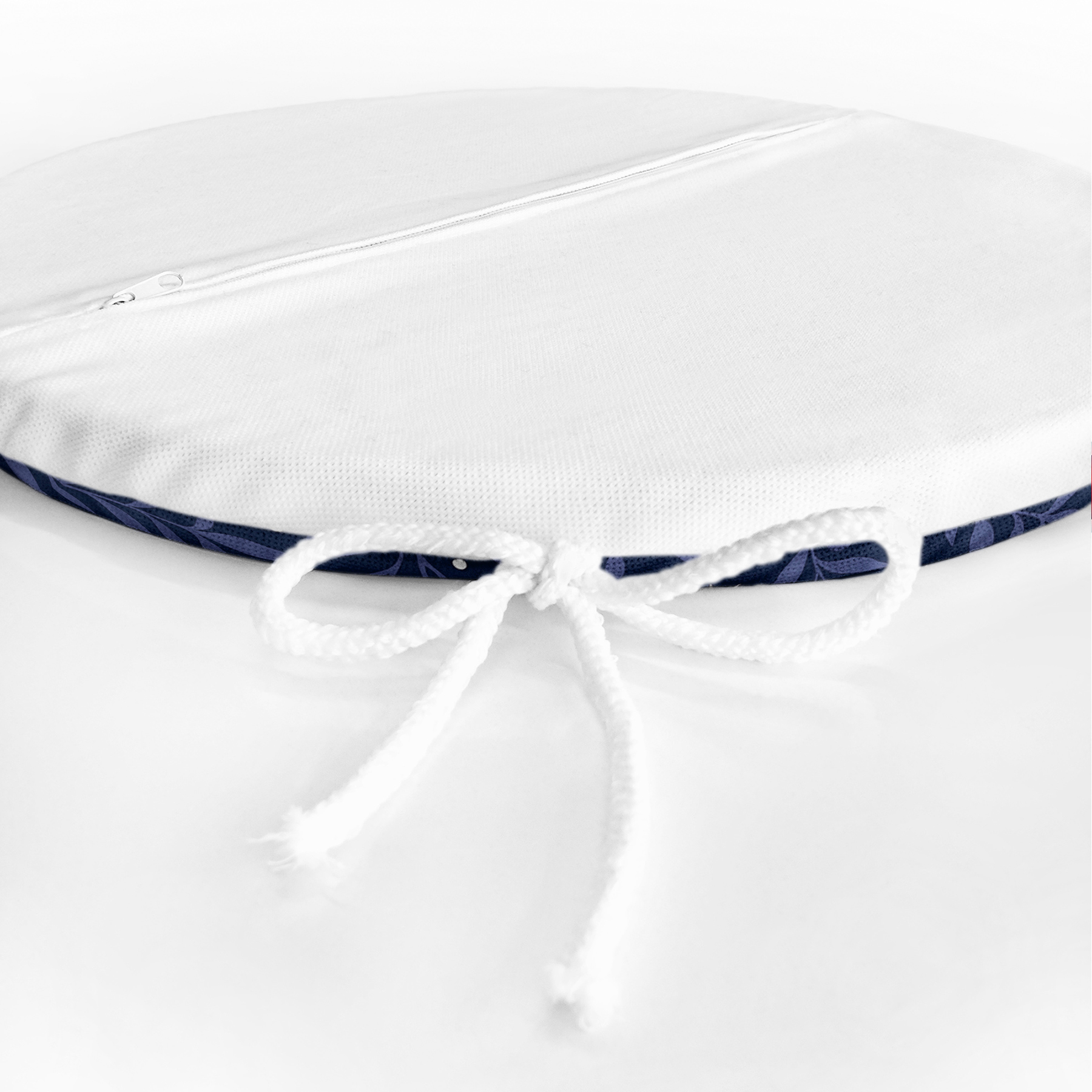 Lacivert Zeminli Çiçek Çerçeveli Dijital Baskılı Yuvarlak Fermuarlı Sandalye Minderi