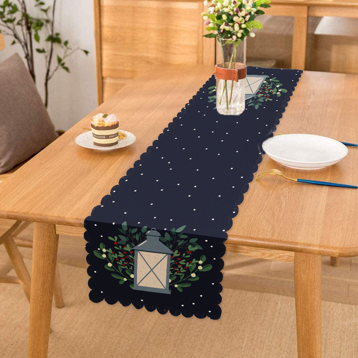 Lacivert Zeminli Özel Tasarımlı Dijital Baskılı Dekoratif Runner