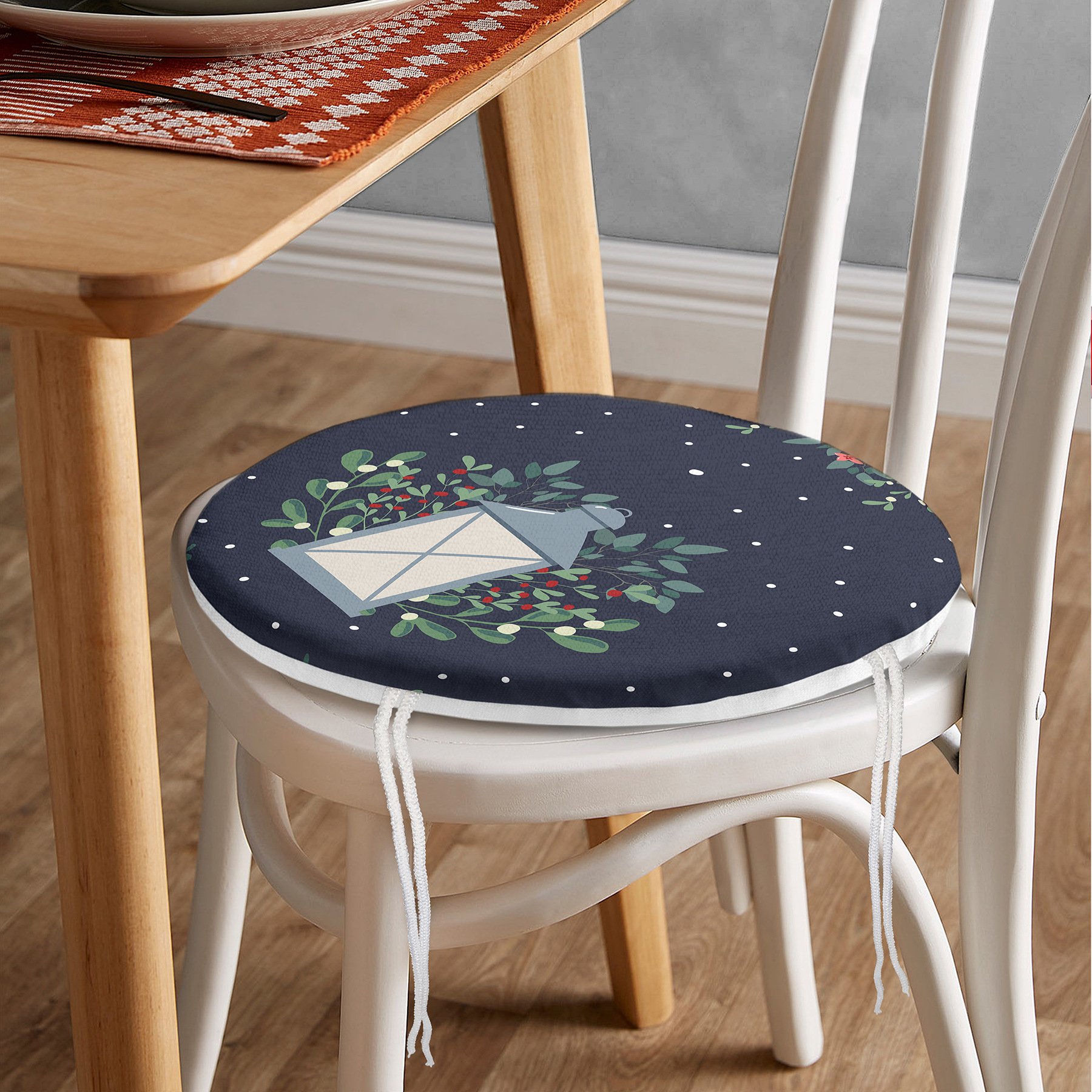 Lacivert Zeminli Özel Tasarımlı Dijital Baskılı Yuvarlak Fermuarlı Sandalye Minderi Realhomes
