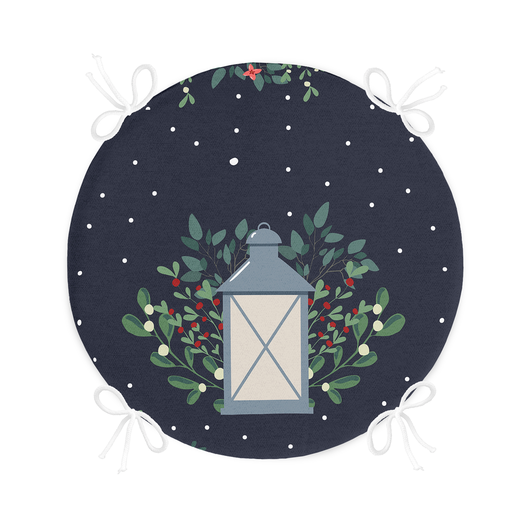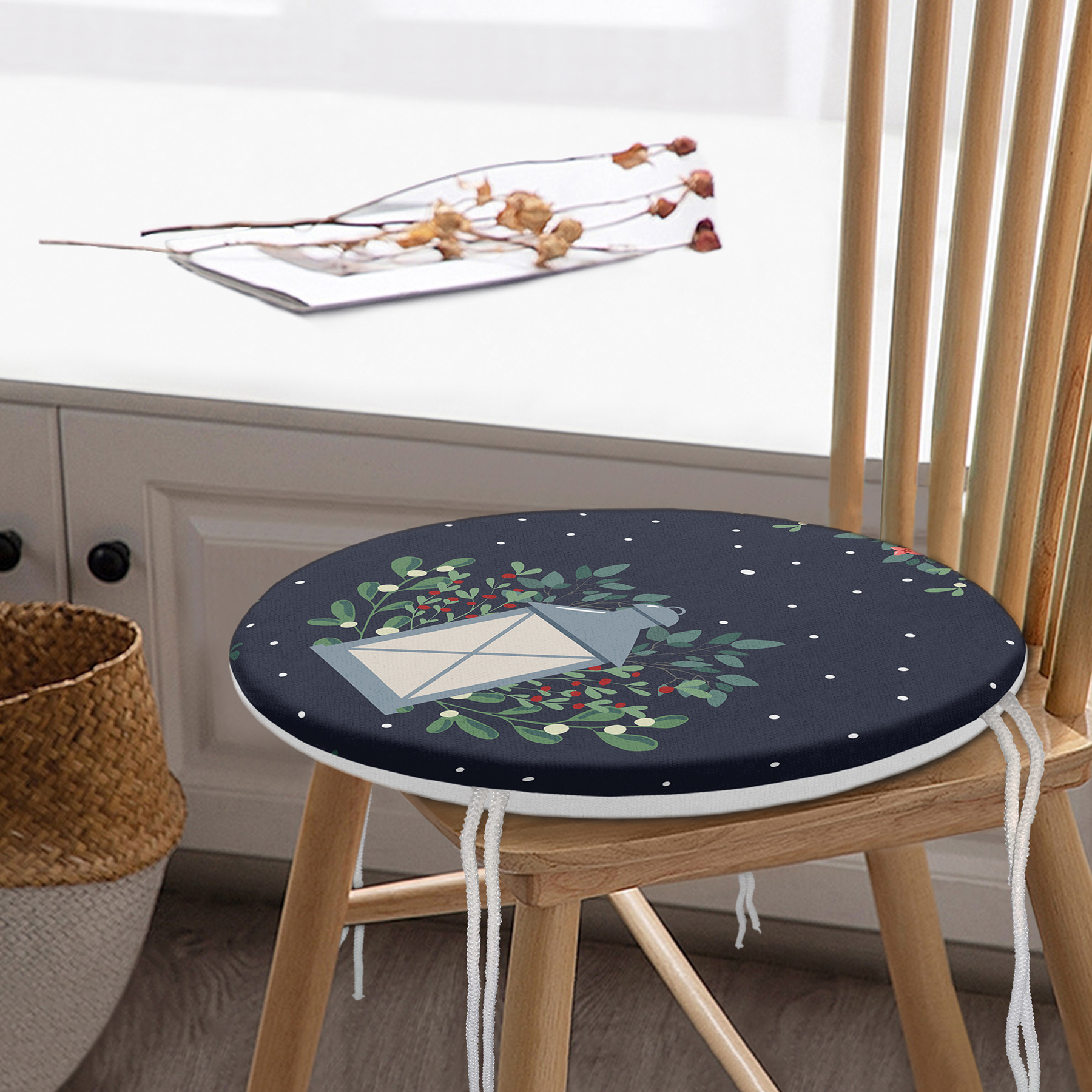 Lacivert Zeminli Özel Tasarımlı Dijital Baskılı Yuvarlak Fermuarlı Sandalye Minderi