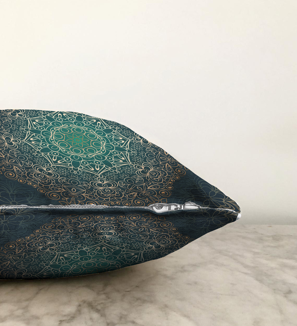 Lacivet Desenli Gold Mandla Motifli Dekoratif Raşel Kadife Yastık Kılıfı