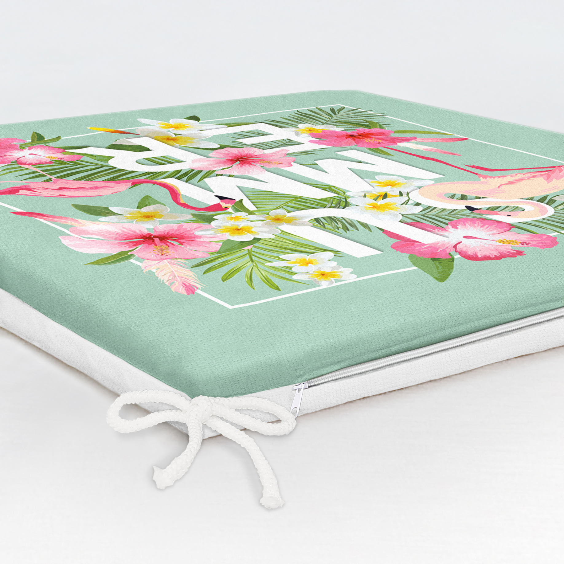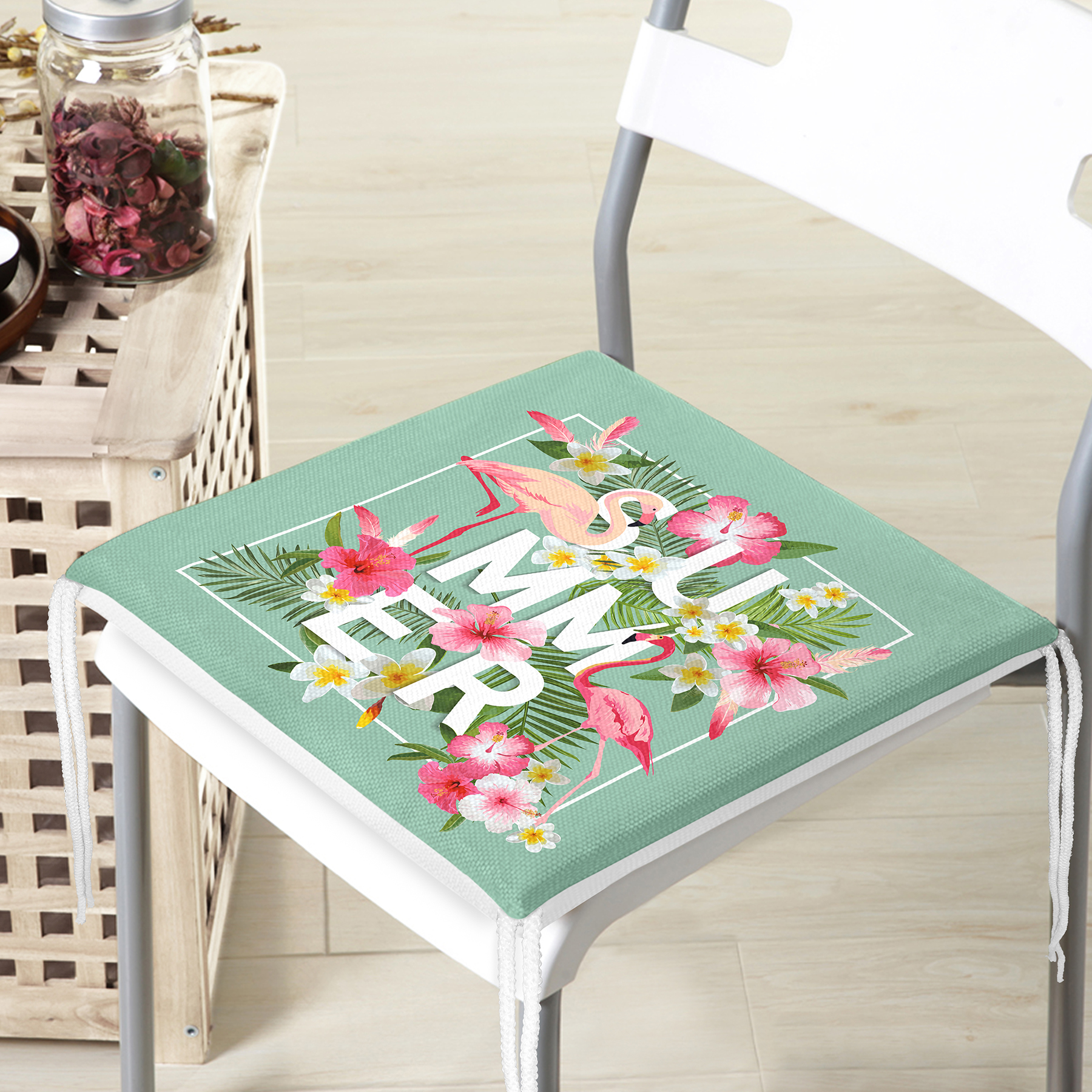 lamingo Desen Dekorati Kare Sandalye Minderi 40x40cm ermuarlı