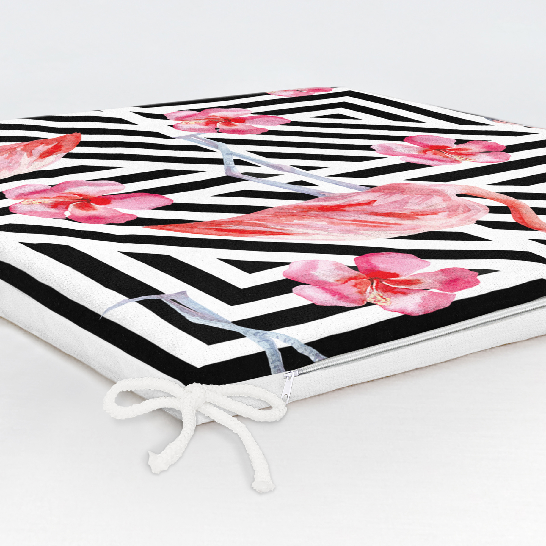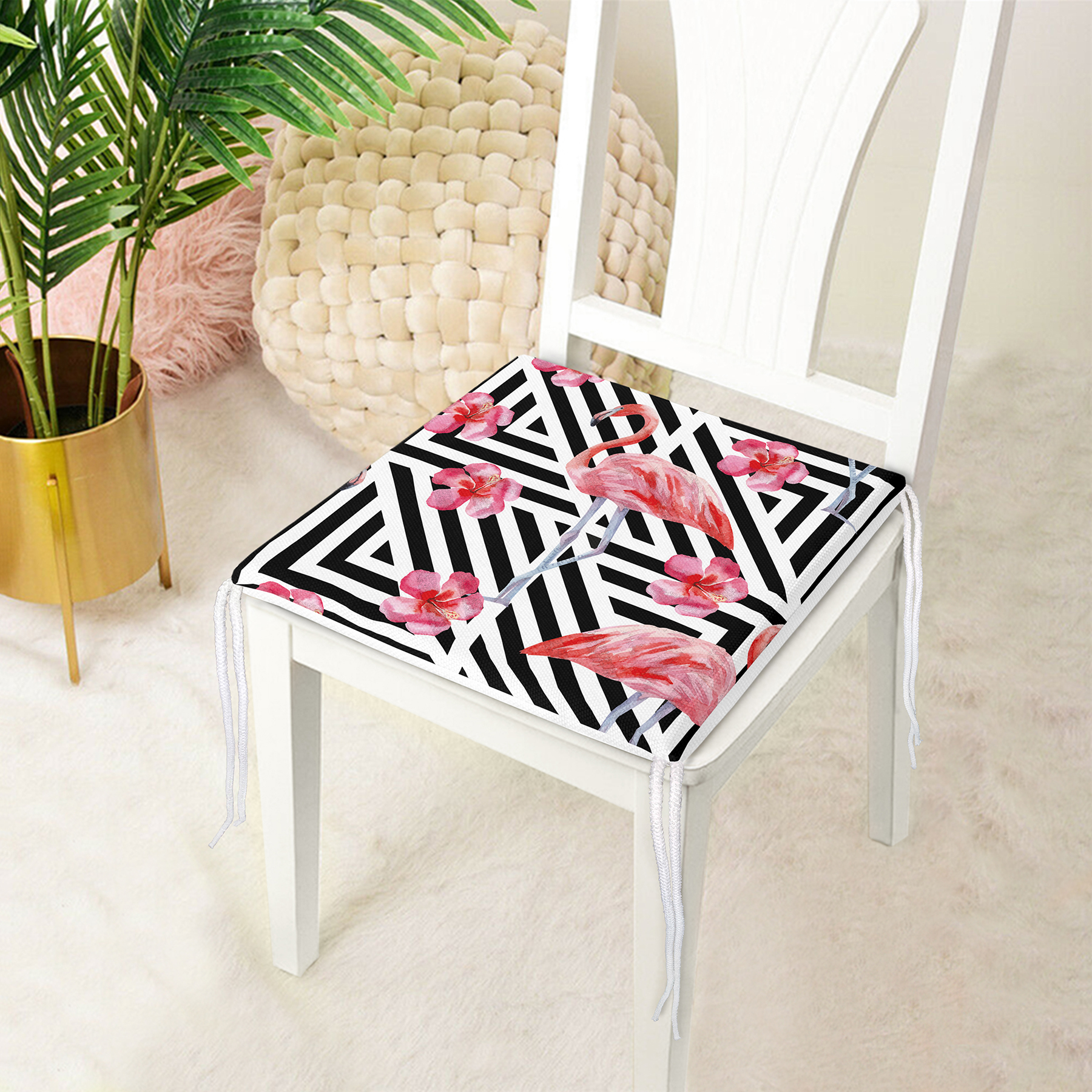 lamingo Desen Dekorati Kare Sandalye Minderi 40x40cm ermuarlı