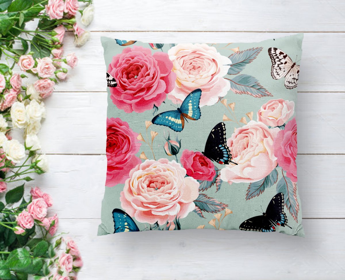 Lekeli Kelebekler Çizimli Dekoratif Yastık Kırlent Kılıfı Realhomes