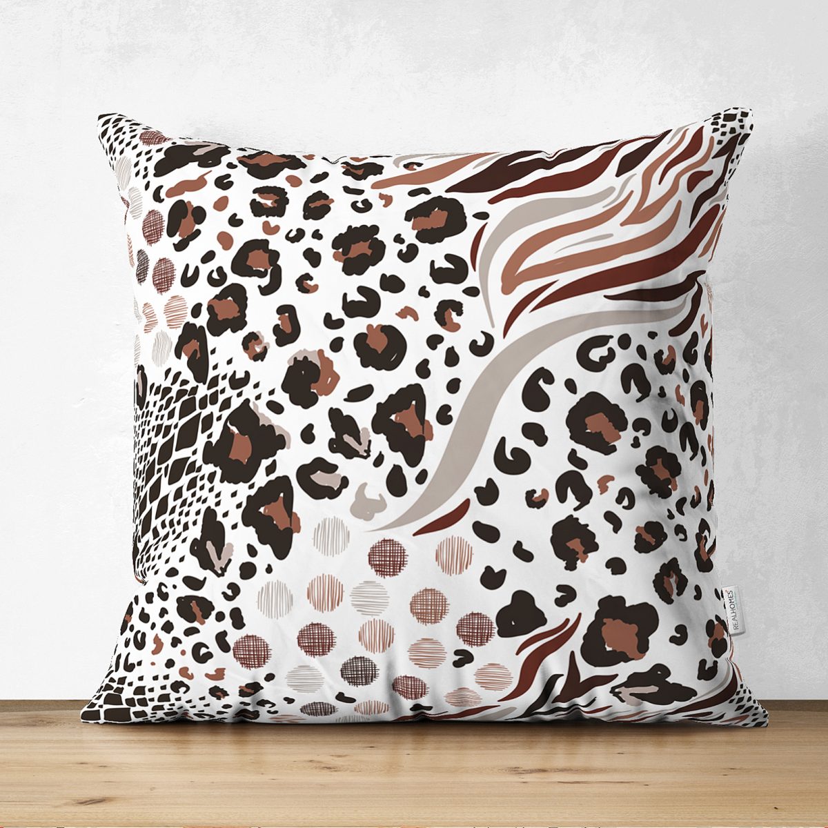 Leopar Çift Taraflı Dijital Baskılı İkat Desenli Modern Süet Kırlent Kılıfı