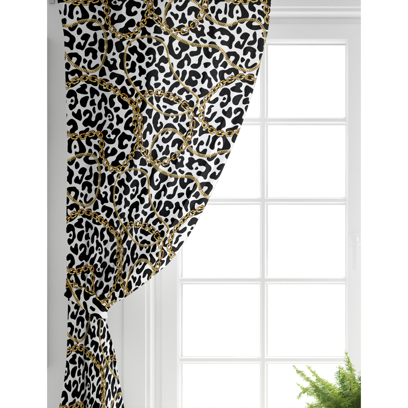 Leopar Desenli Altın Detaylı Özel Tasarım Modern Salon Fon Perde