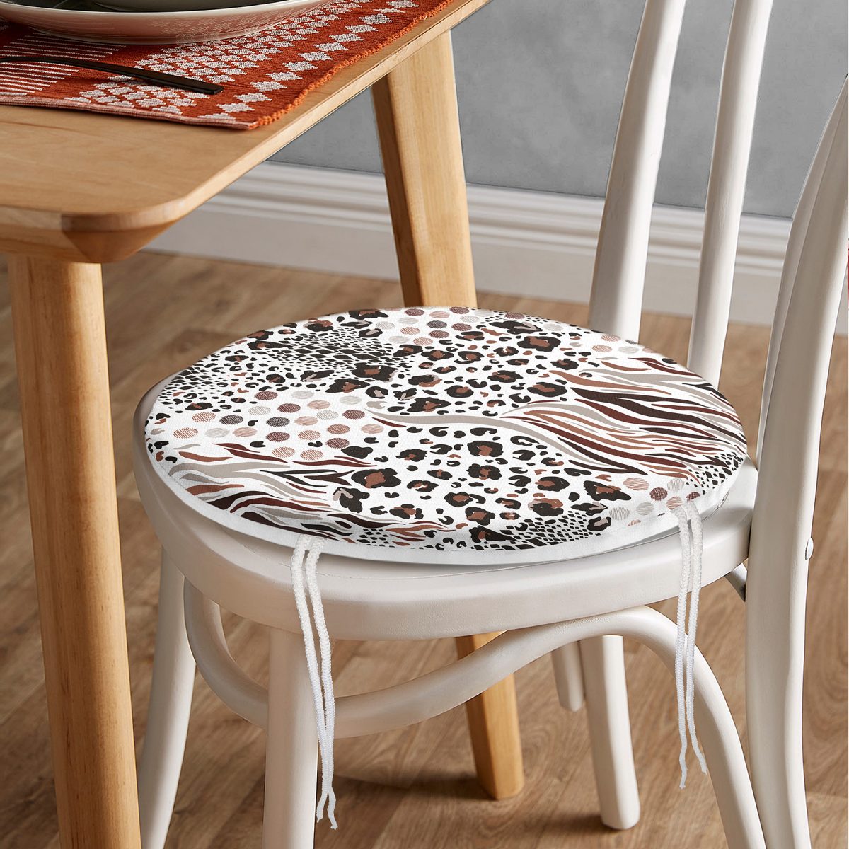 Leopar Dijital Baskılı İkat Desenli Modern Yuvarlak Fermuarlı Sandalye Minderi