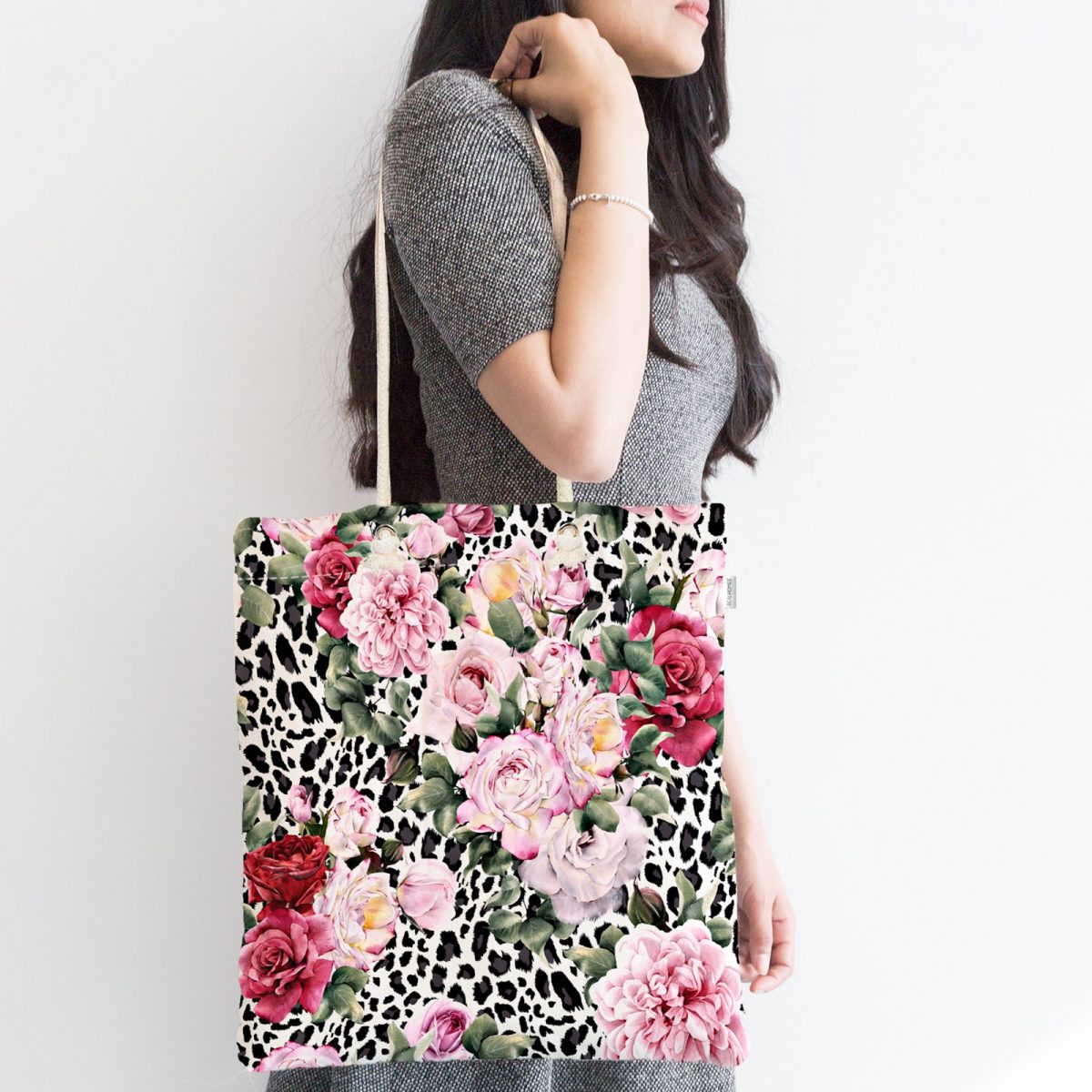Leopar Temalı Kavaniçe Desenli Dijital Baskılı Fermuarlı Kumaş Çanta